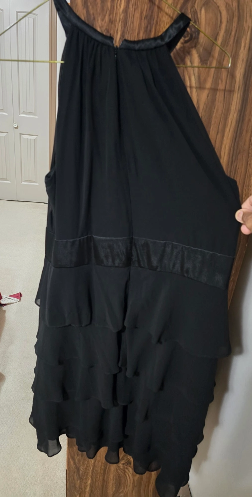 Selling a lovely black dress from Jones & Co. It's a size 14 and features a stylish tiered design. Perfect for a night out or a special occasion!