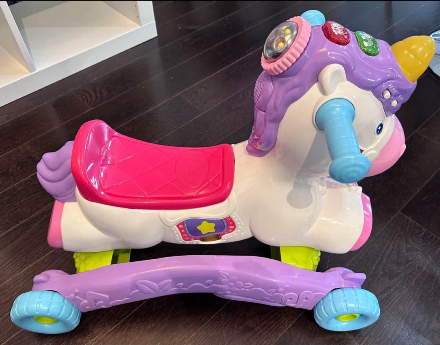 Your little one will love this VTech Unicorn Magic Learning Ride-On! It's in great shape and ready for a new home. This interactive toy combines fun and learning, perfect for toddlers who are ready to explore. It features lights, sounds, and educational content to keep them entertained and engaged