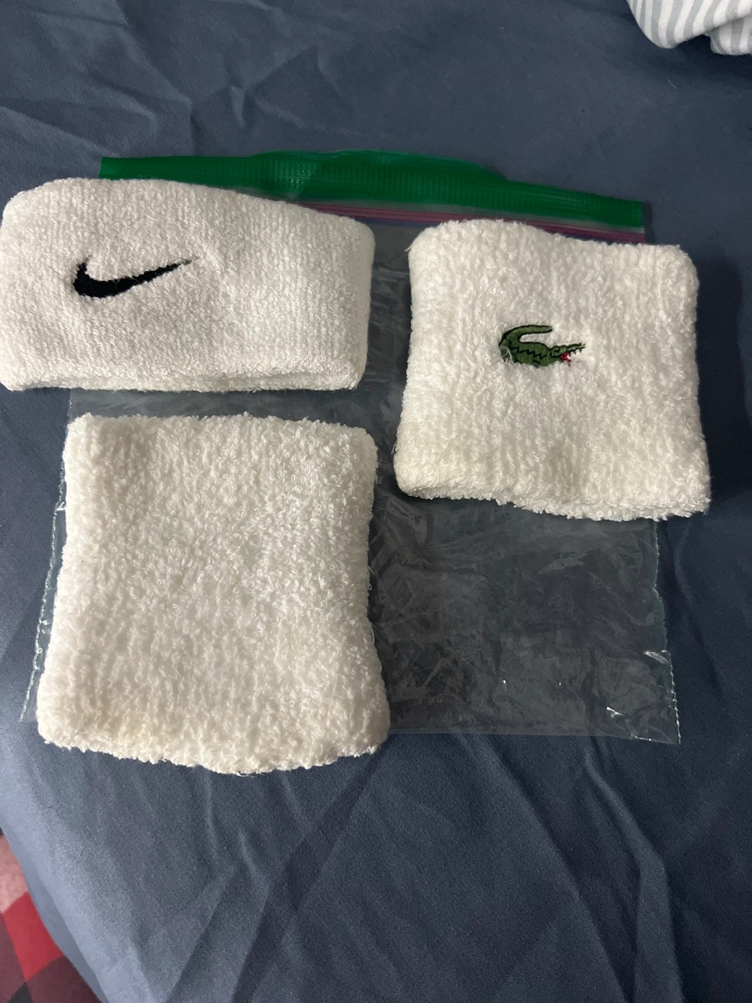 Selling a set of wristbands including one Nike, one Lacoste and one plain white wristband. They're in great condition and ready for a new owner! Perfect for sports or just to accessorize Cash only🙃