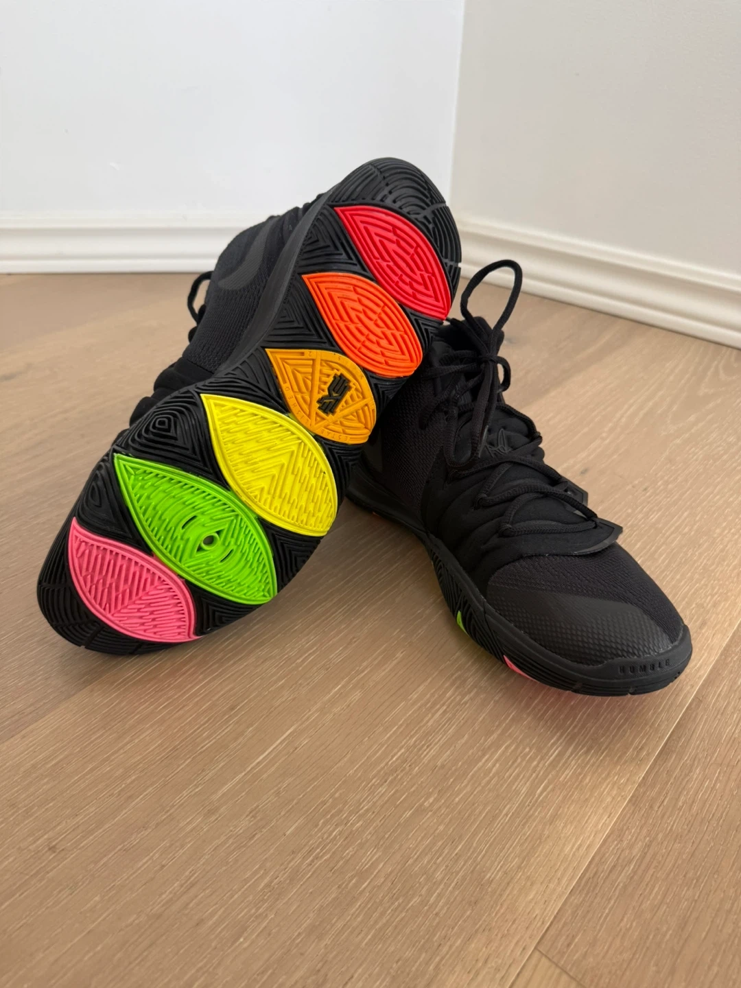 Like new Nike Kyrie 5 “Neon Sole” basketball shoes, size 9.5 US. This same model is selling for way more online so this is a great deal.
