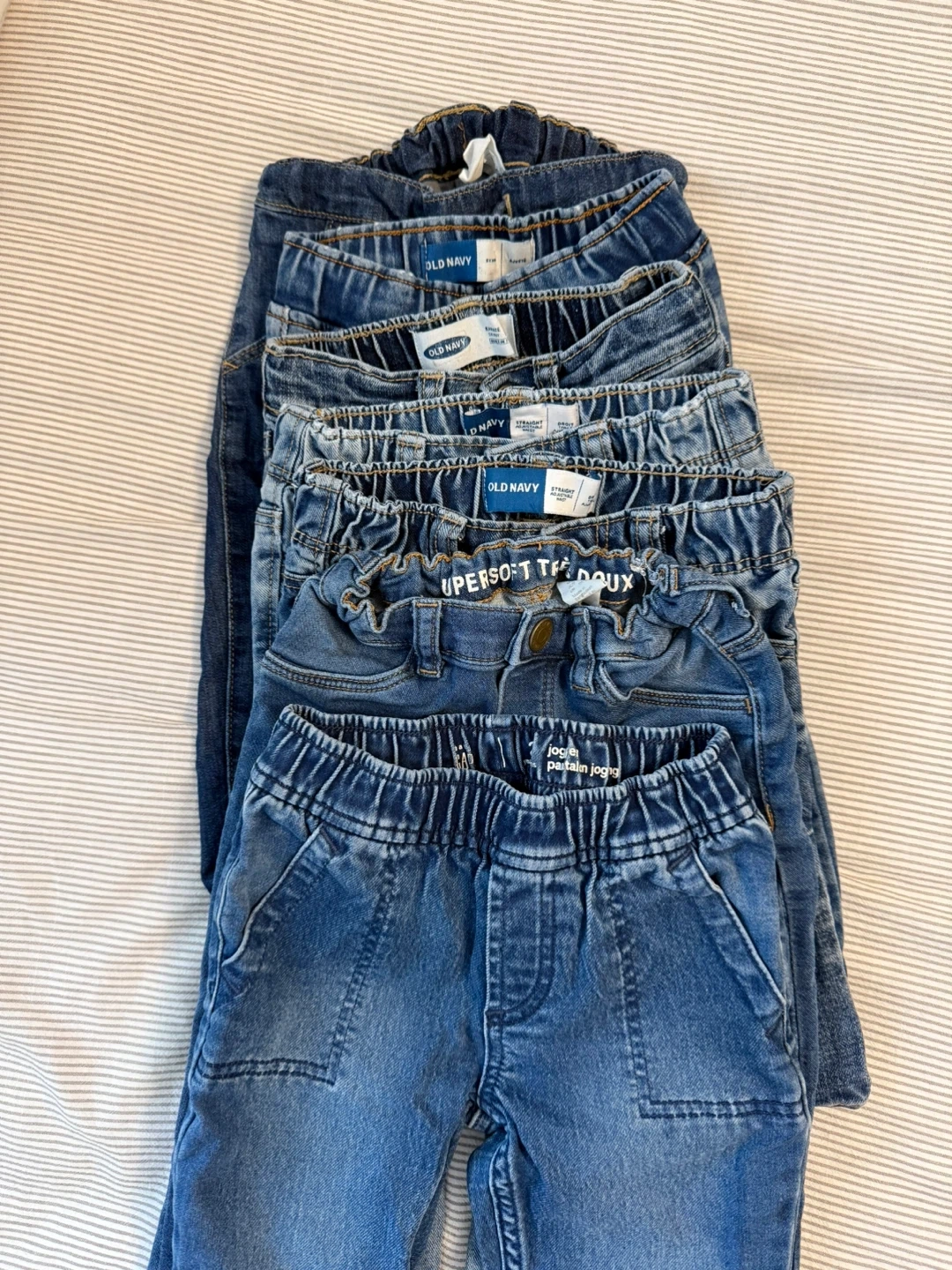 7 pairs. Old navy, H&M, and baby gap denim. H&M is lined. Comes from smoke free pet free home. Cash only. Pick up Lakeshore/Forty First Street Etobicoke.
