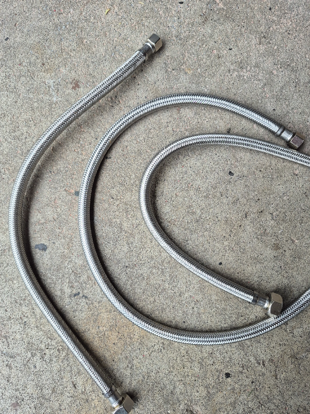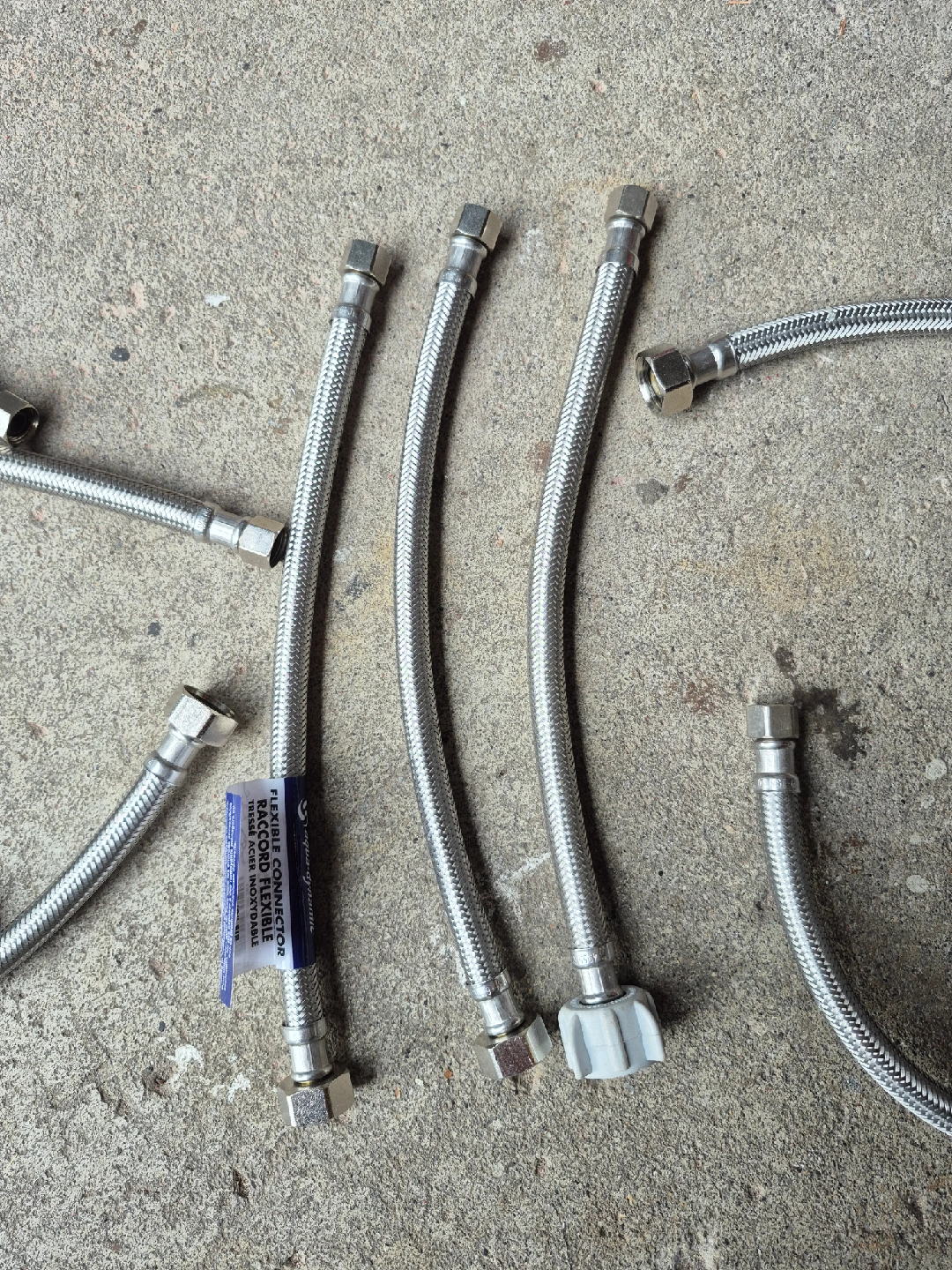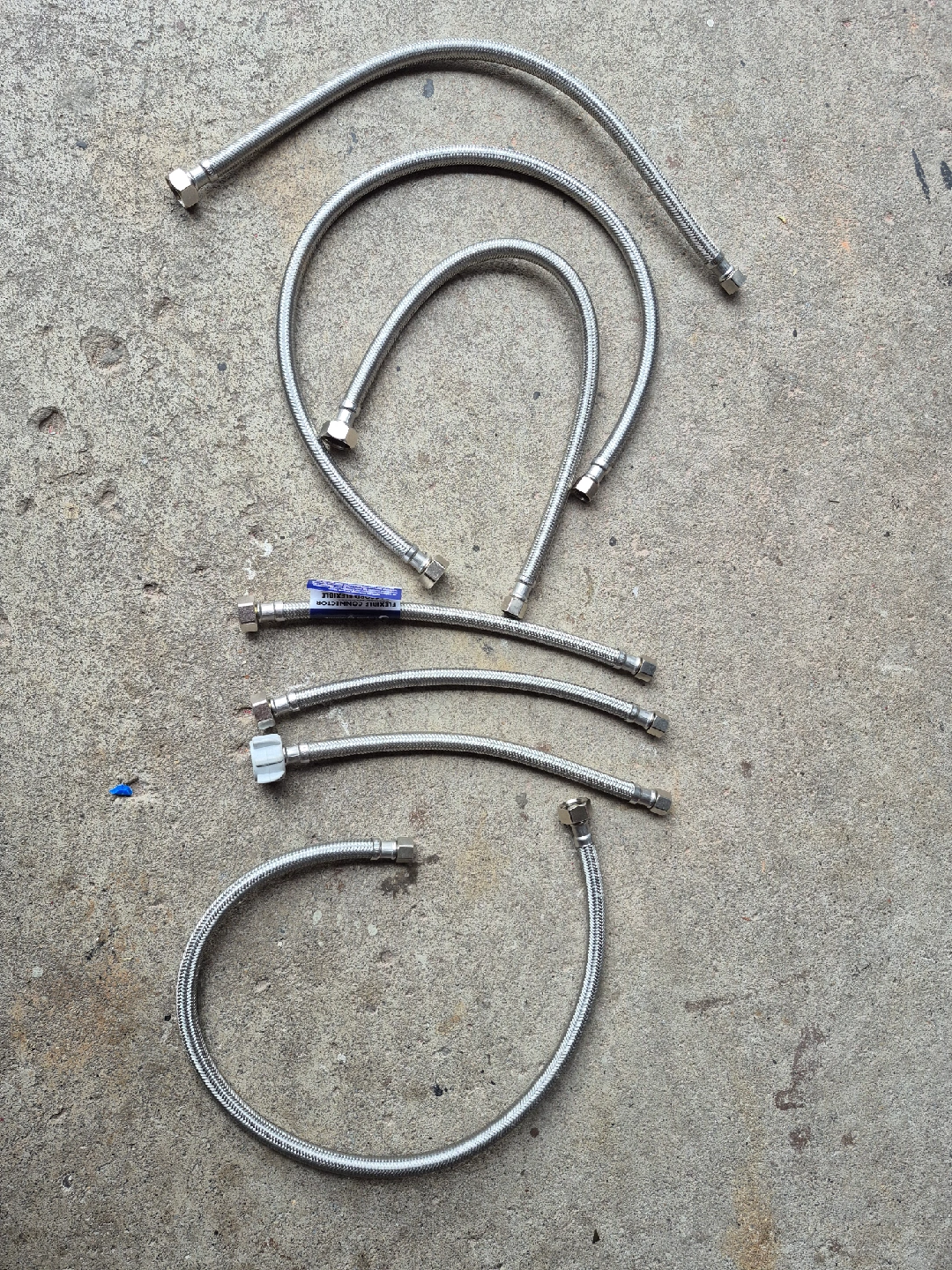 Selling some quality stainless steel flexible braided water connectors. These are ideal for connecting your water supply to faucets or toilets. They are flexible and easy to install. Various lengths. Price is per each.