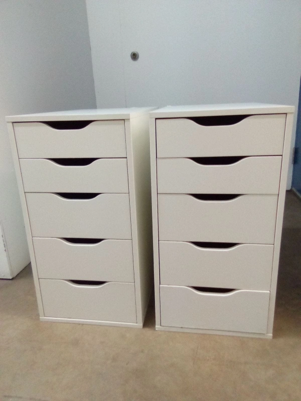 MOVING SALE!! Great Deal!! Selling two IKEA Alex drawer units in white. They're in great shape and ready to organize your space! Dimensions are 36x70 cm (14 1/8x27 1/2 "). Originally bought for $129 each. Asking $160 both drawers with free desk top **will include desk top for **free** . disclosure: small hole on rt corner of desk top, but easy to hide with anything small like a plant. Drawers in great shape.