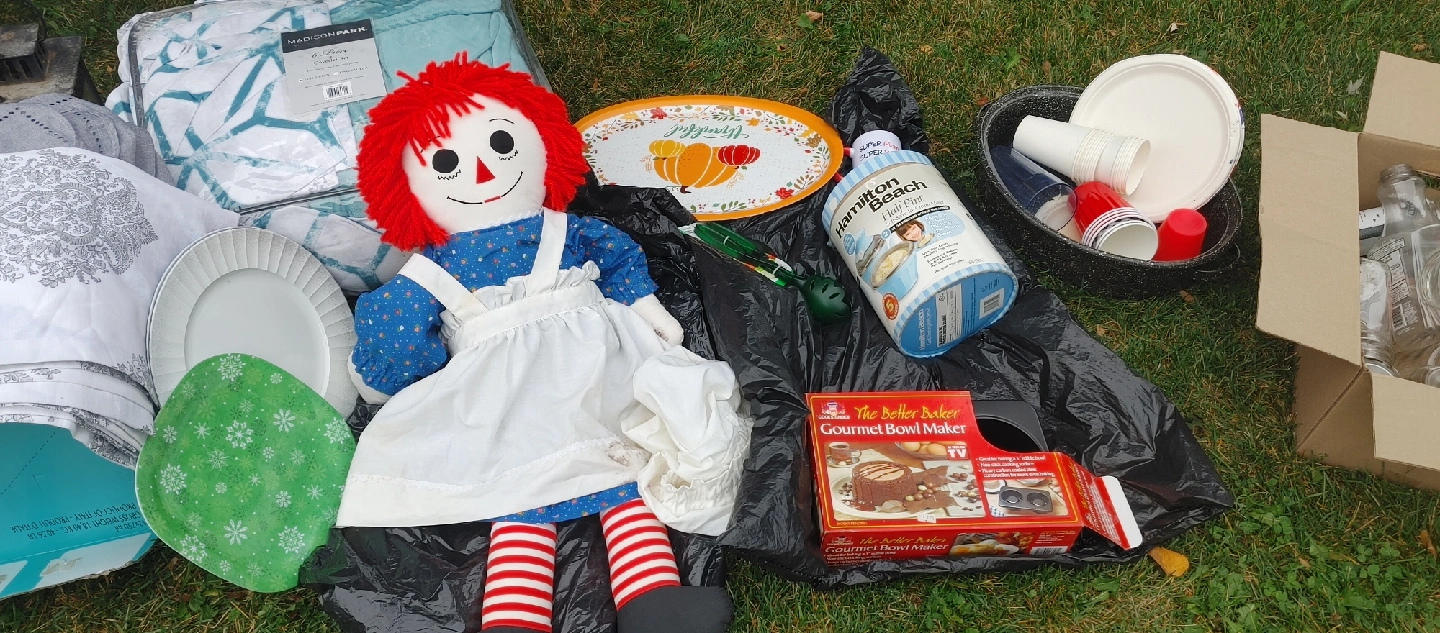 A variety of items are available, including a Raggedy Ann doll, a Madison Park comforter set, a Hamilton Beach hand mixer, and The Better Baker Gourmet Bowl Maker.