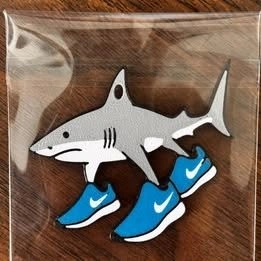 Looking for something fun and totally unique? This custom-made shark keychain is rocking four bright blue Nike-style sneakers!! Perfect for your backpack, keys, or to gift someone with a sense of humor.