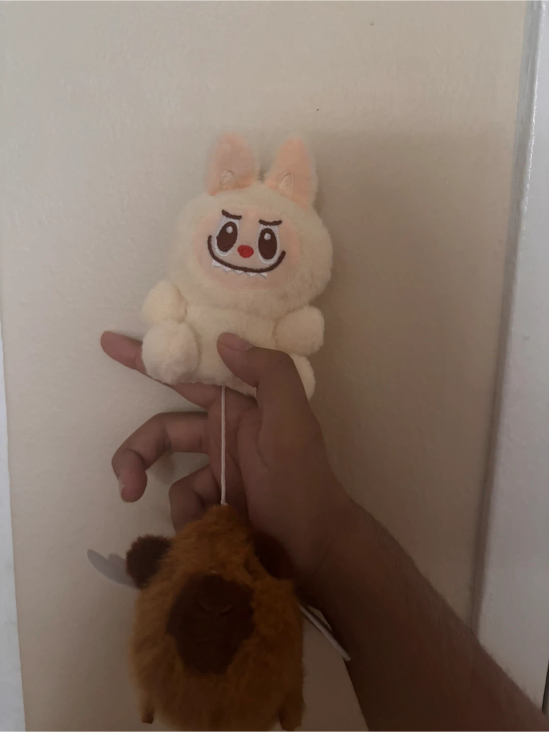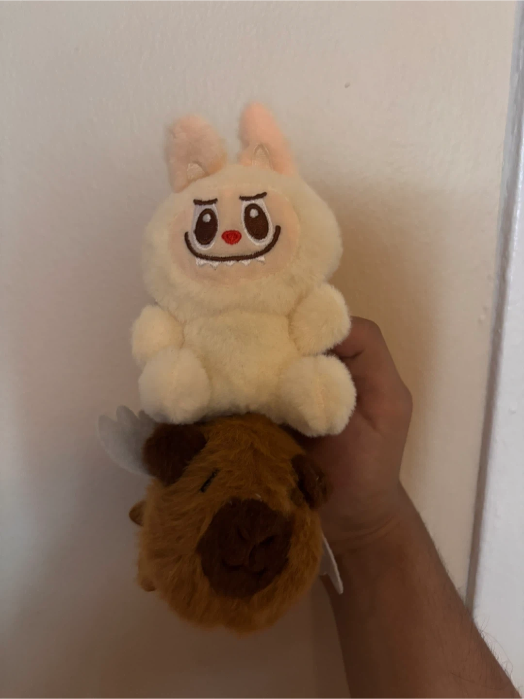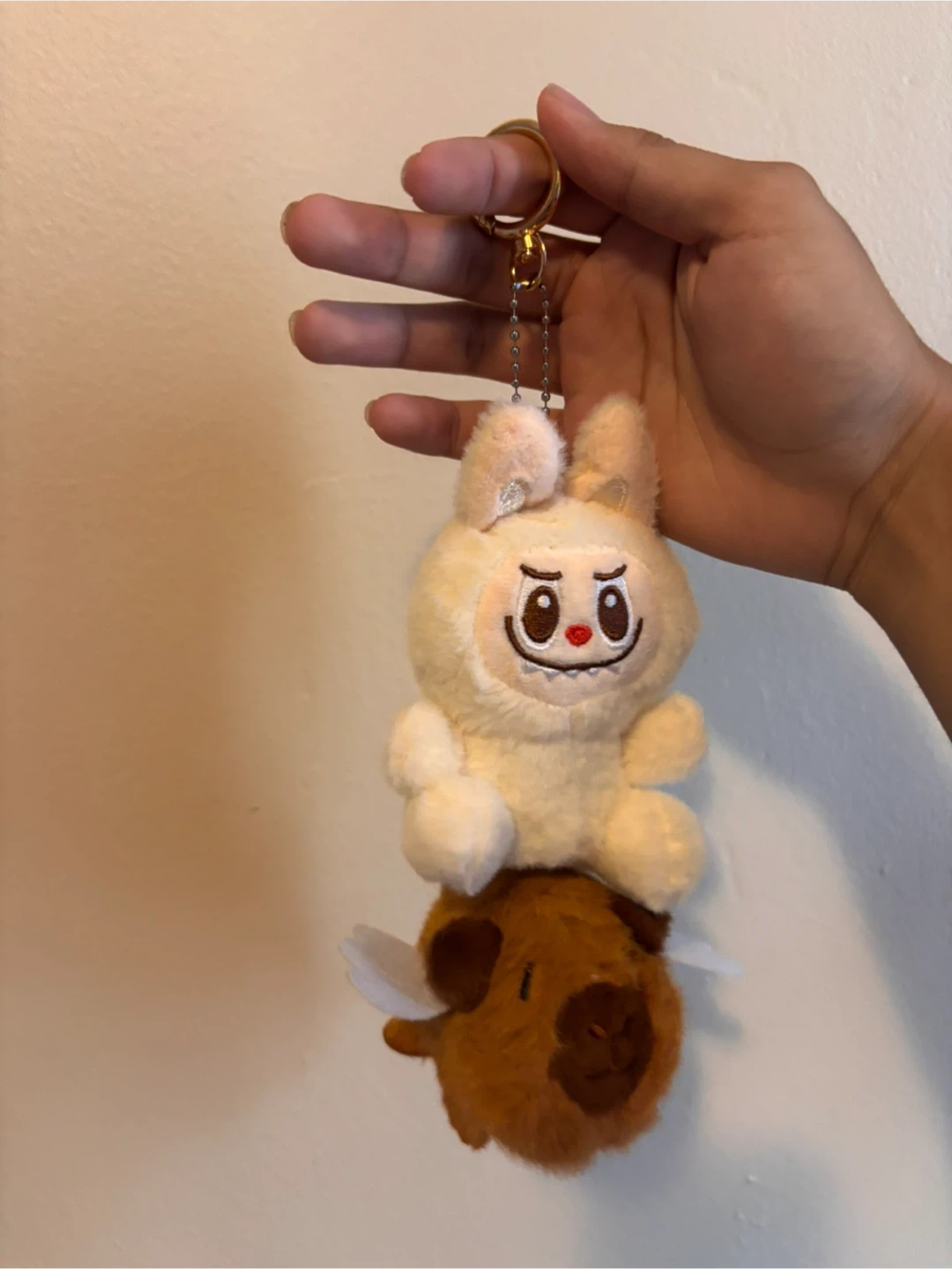 A labubu teddy key chain with a capibara CASH ONLY