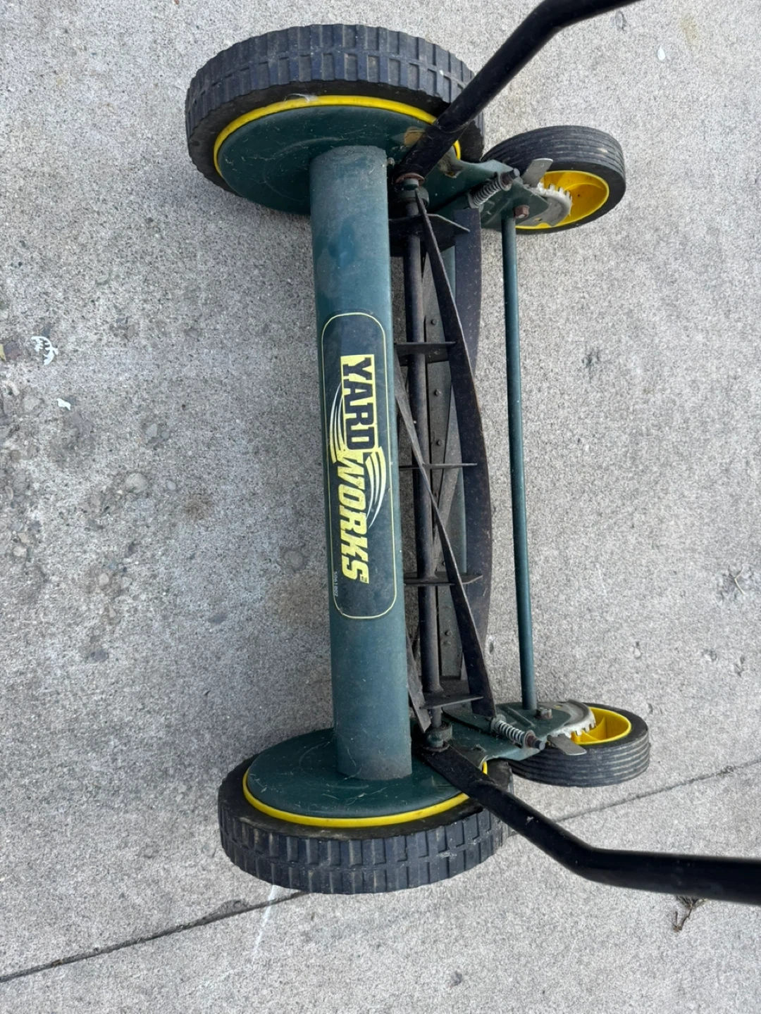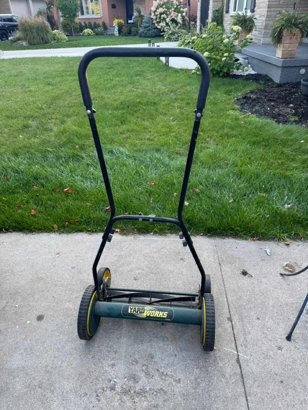 Selling a Yardworks push reel lawn mower. It's in good condition and ready to keep your lawn looking tidy. Perfect for smaller yards and those who prefer a manual mowing experience!