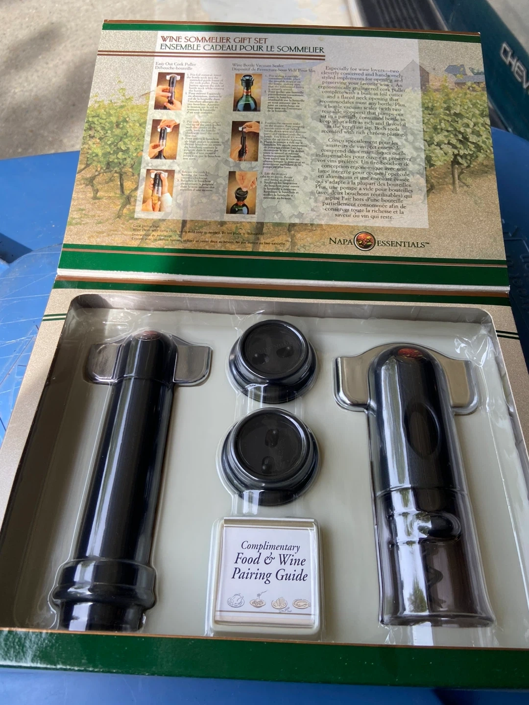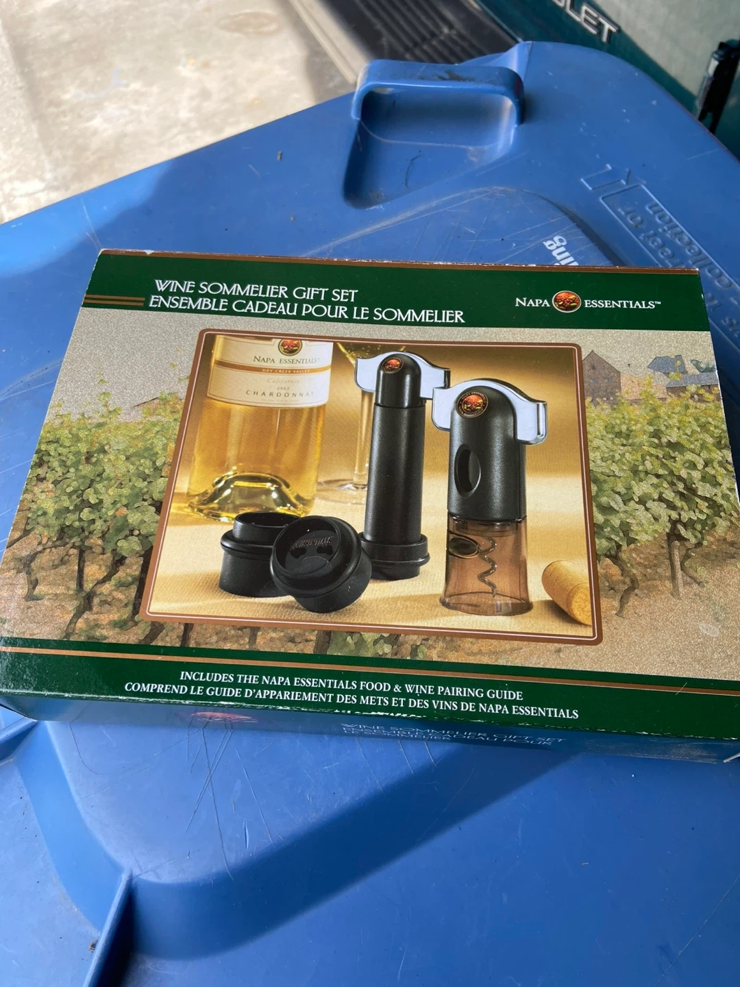 Selling a Napa Essentials Wine Sommelier Gift Set! It includes a wine bottle vacuum sealer, easy cut cork puller, and a complimentary food and wine pairing guide. Perfect for wine lovers!