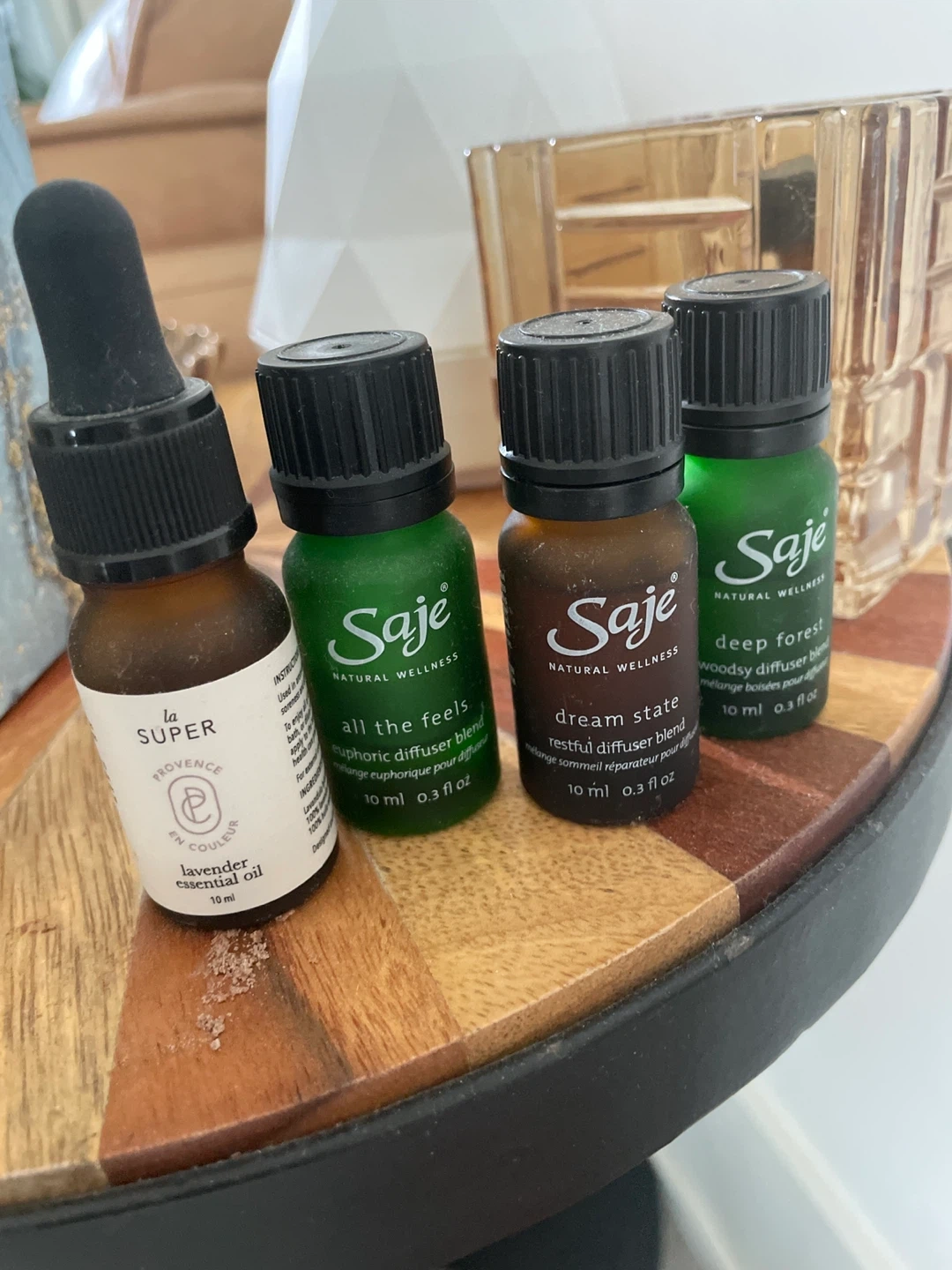 Selling a Saje Natural Wellness diffuser along with a few essential oil blends! You'll get the 'All the Feels,' 'Dream State,' and 'Deep Forest' blends, all in 10 ml bottles. Also includes a bottle of La Super Provence lavender essential oil. Perfect for creating a relaxing atmosphere in your home