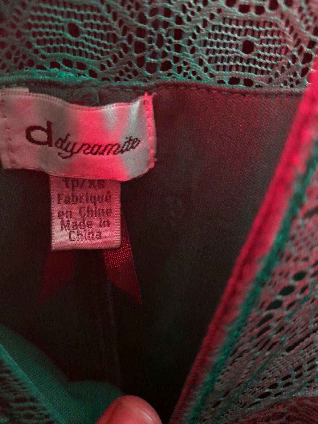 Selling a cute green lace dress from Dynamite! It's a size TP/XS and in great condition. Perfect for a night out or a special occasion!