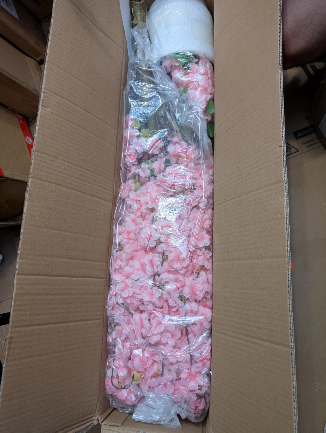 Add a touch of spring to your home with this beautiful pink cherry blossom tree! It comes in its original box and is ready to brighten up any room. Perfect for adding a pop of colour and a touch of nature indoors