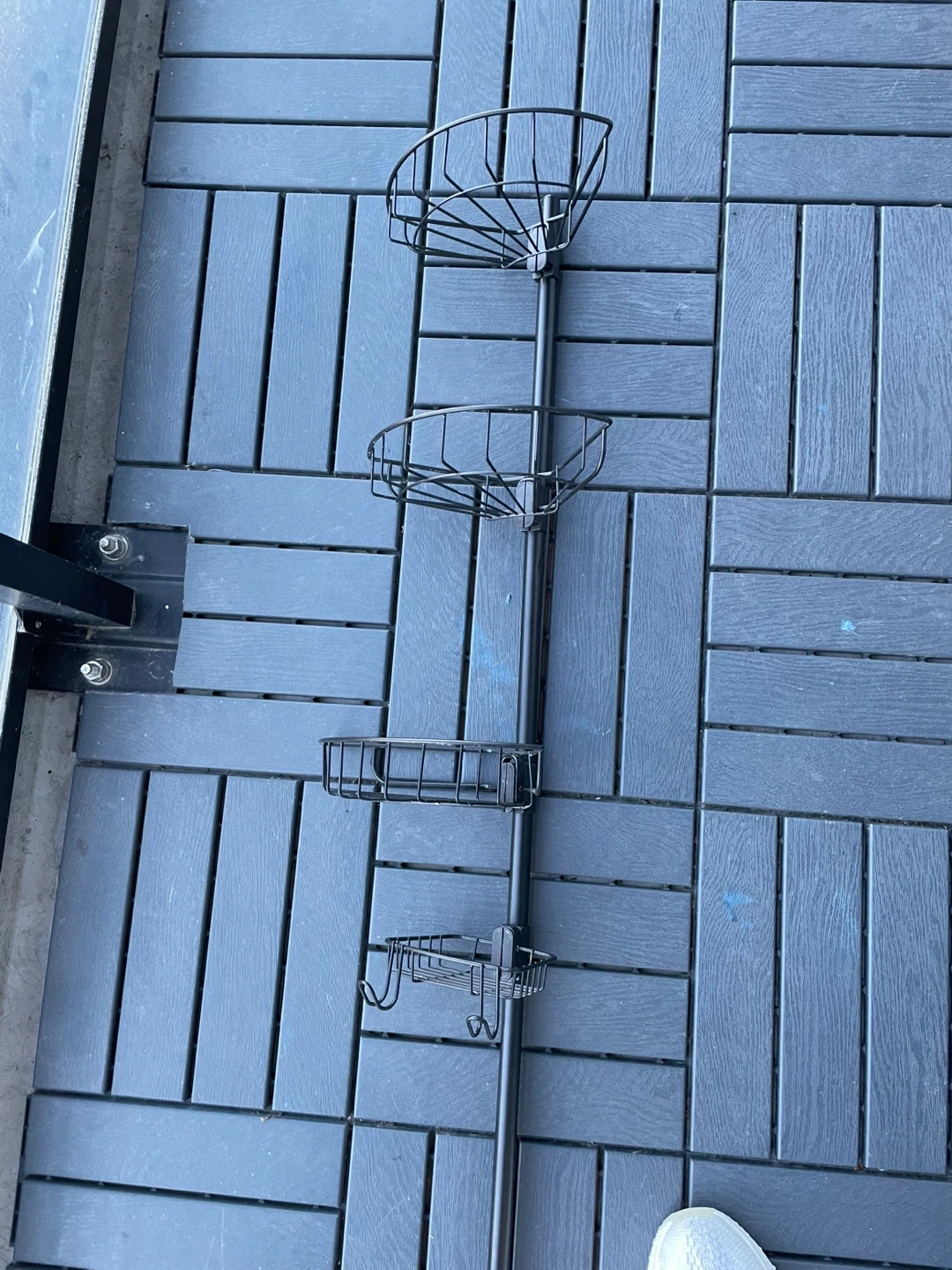 Declutter your shower space with this handy tension pole shower shelf! It's black, offering lots of room for your shampoos, soaps, and other essentials. Easy to install and a great way to keep everything organized