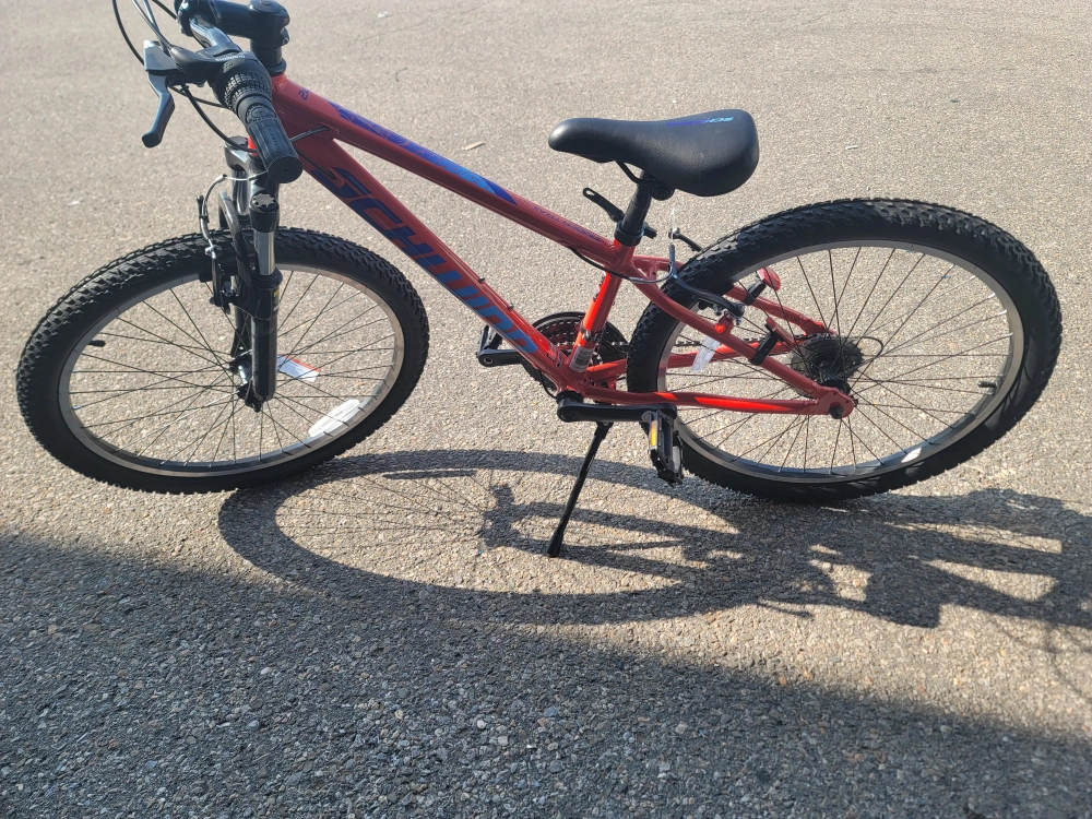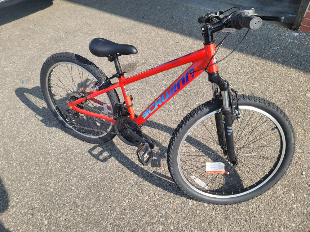 Schwinn Timber Trail ALC Mountain Bike - BRAND NEW - Aluminum hardtail frame with suspension fork for controlled riding - 21-speed twist shifters with rear derailleur for effortless gear changes - Alloy linear pull brakes for reliable stopping power - Quick release seat post for easy fit adjustments - 24-inch wheels, perfect for riders 4'8"-5' tall - Limited lifetime warranty *Details:* - Color: Red - Weight capacity: 150 lbs - Size: 24" - Product dimensions: 60.13" x 22.4" x 38.12" Pickup in Milton Mississauga pickup can be arranged