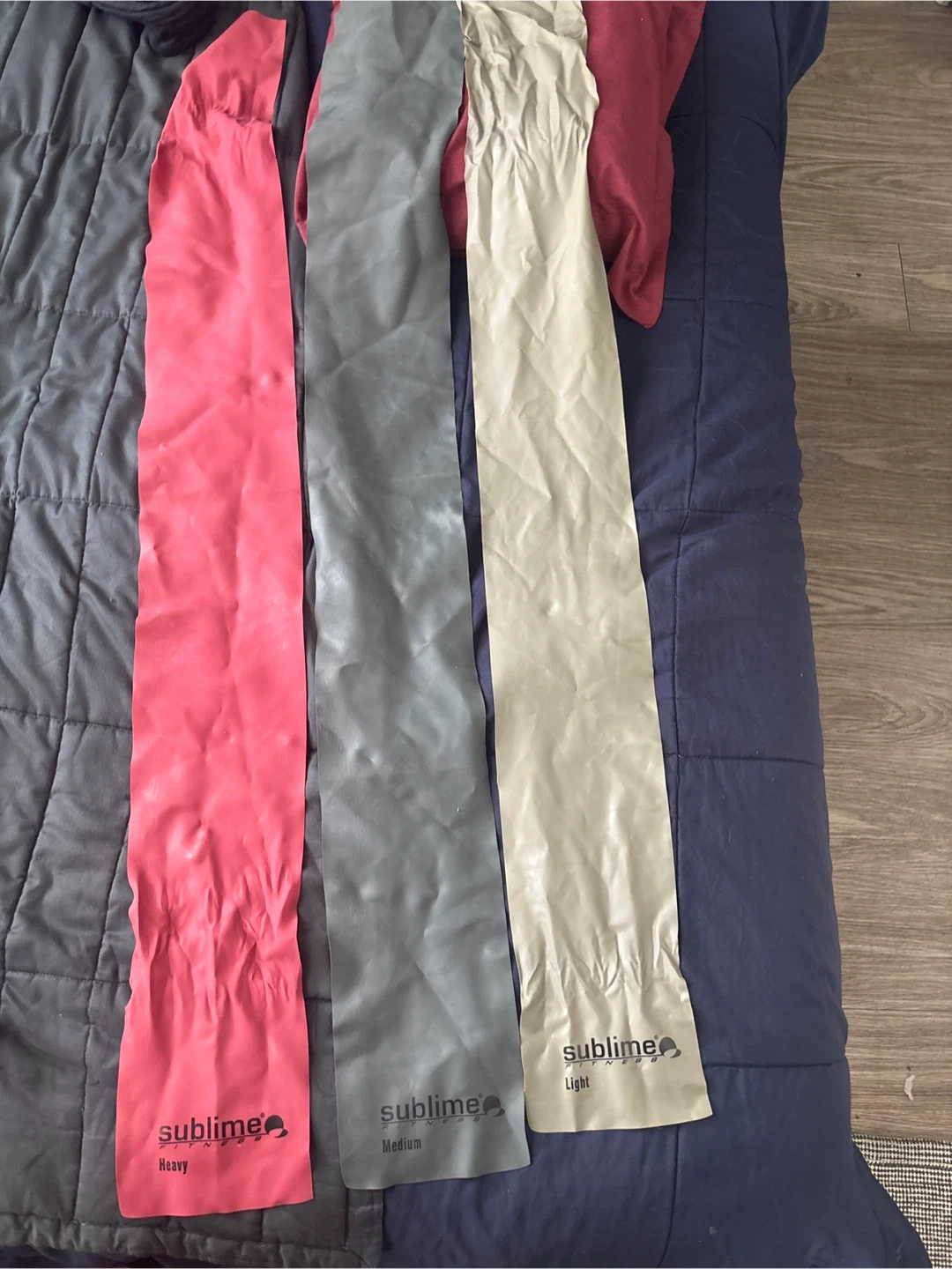 Selling a set of Sublime Fitness resistance bands. This set includes a light, medium, and heavy resistance band, so you can customize your workout. Perfect for at-home workouts or taking to the gym!