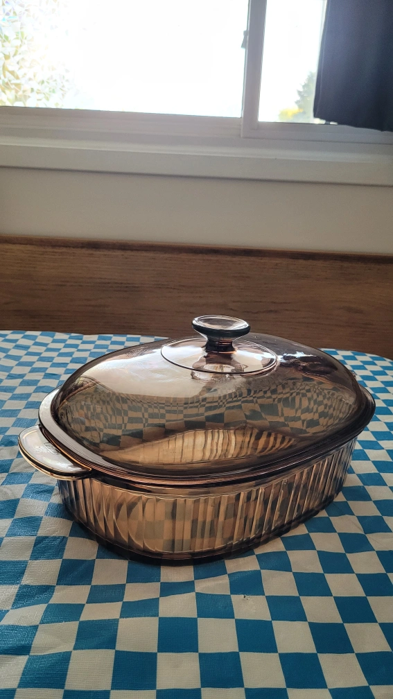 Beautiful amber vision corning ware dish, has very minor scuffs and stains that are barely noticeable. In great condition. Pick up in Hespeler area Cambridge or Victoria Hills area Kitchener! ๐ can deliver if close by. Check out my other listings, thank you!