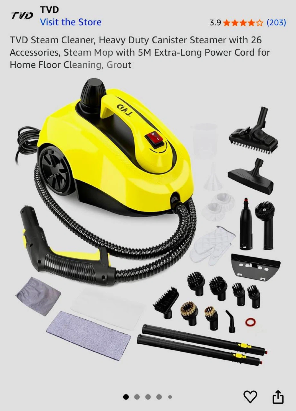 TVD Steam Cleaner โ Heavy Duty Canister Steamer ๐จ Brand new, tested, fully functional. โ Powerful steam cleaner for floors, tiles, grout, kitchen, bathroom, and upholstery. โ 5M extra-long power cord for easy reach. โ Comes with multiple attachments for versatile cleaning. ๐ฐ Price: 120 ๐ Waterloo ๐ Check out my other listings!