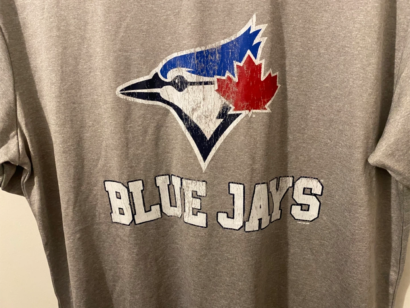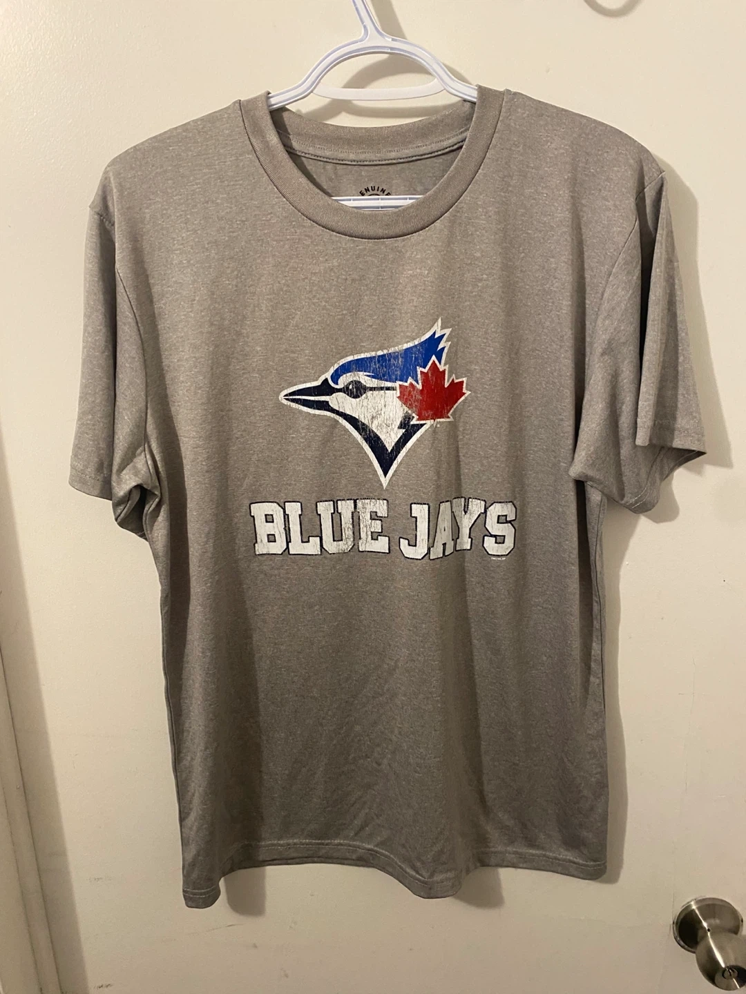 Selling a Blue Jays T-shirt in size medium. It's in great condition and features the iconic Blue Jays logo with a Canadian maple leaf. Perfect for showing your team spirit!