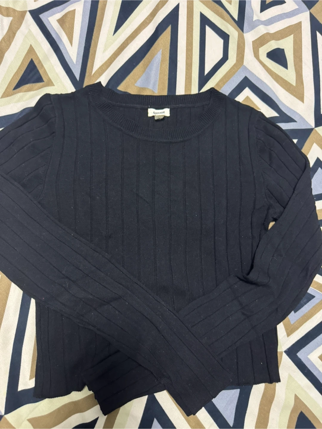 Selling a black long sleeve ribbed top from Garage! It's in great condition and perfect for layering or wearing on its own