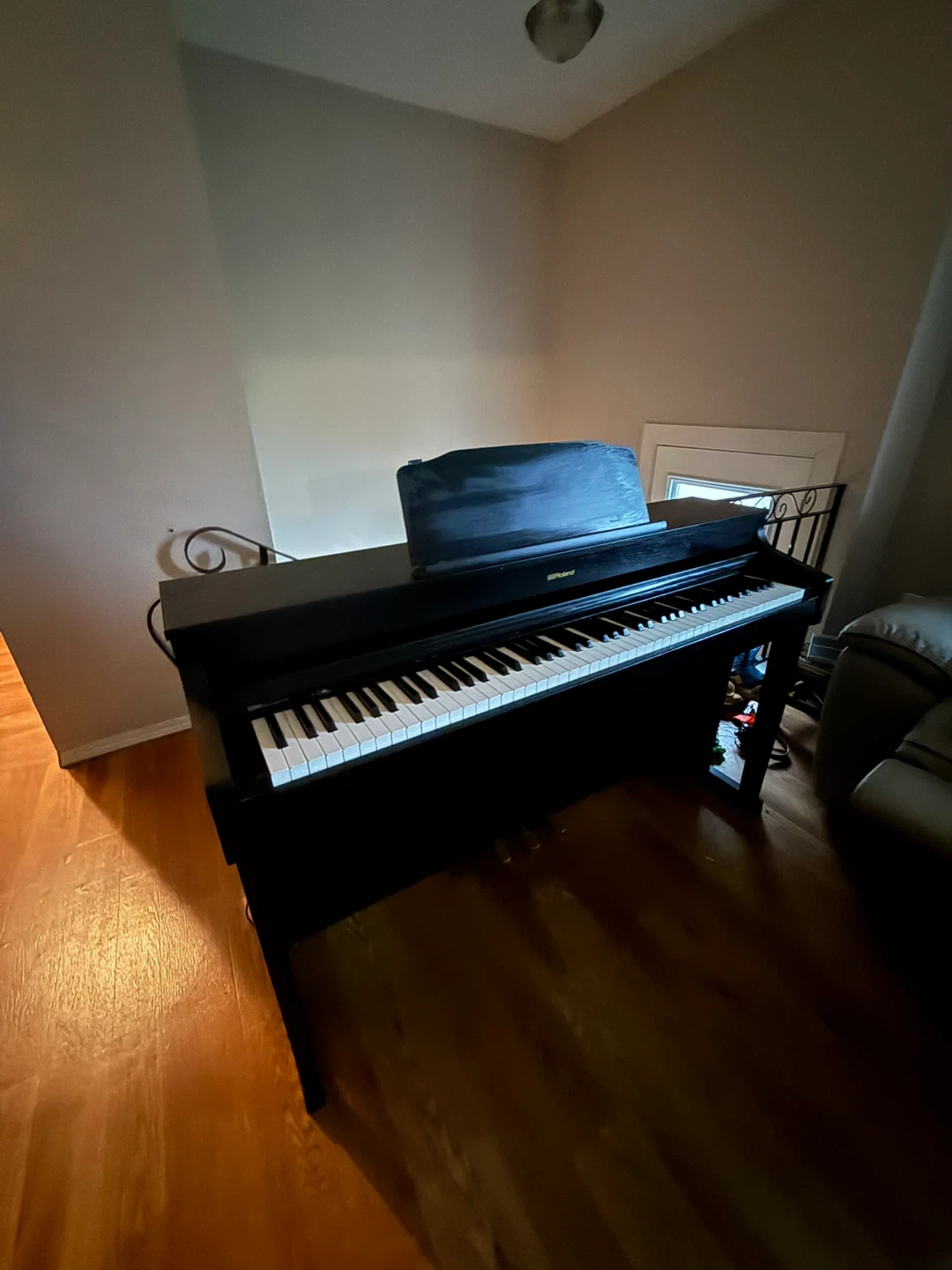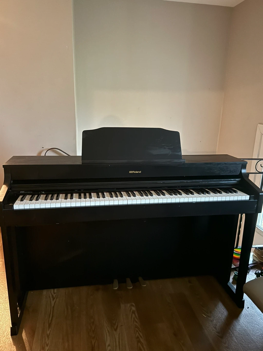 Selling a Roland digital piano in black. It's in great condition and ready for a new home. Perfect for beginners or experienced players alike! It has a sleek design and would look great in any room