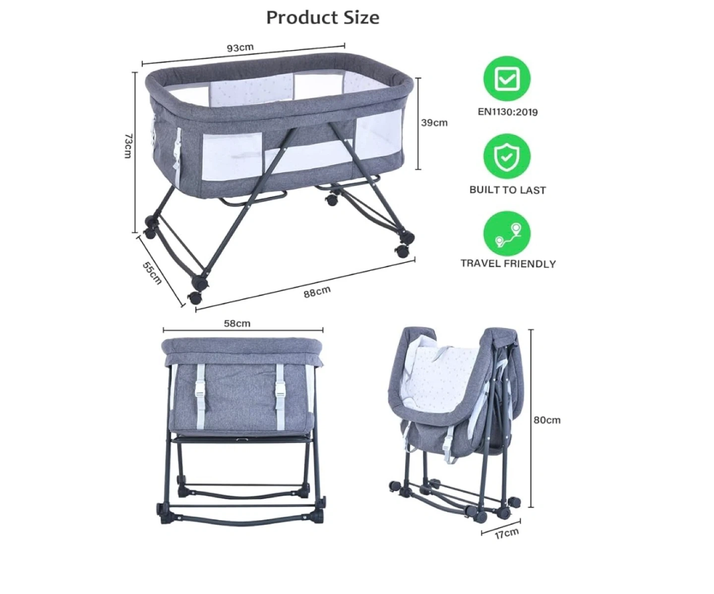 Looking to sell this portable baby bassinet! It's in great condition and perfect for naps and sound sleep. It's designed to be travel-friendly and built to last. Key features: - Size: 93cm x 73cm x 39cm - Easy to move around with wheels - Can be folded for storage and transport