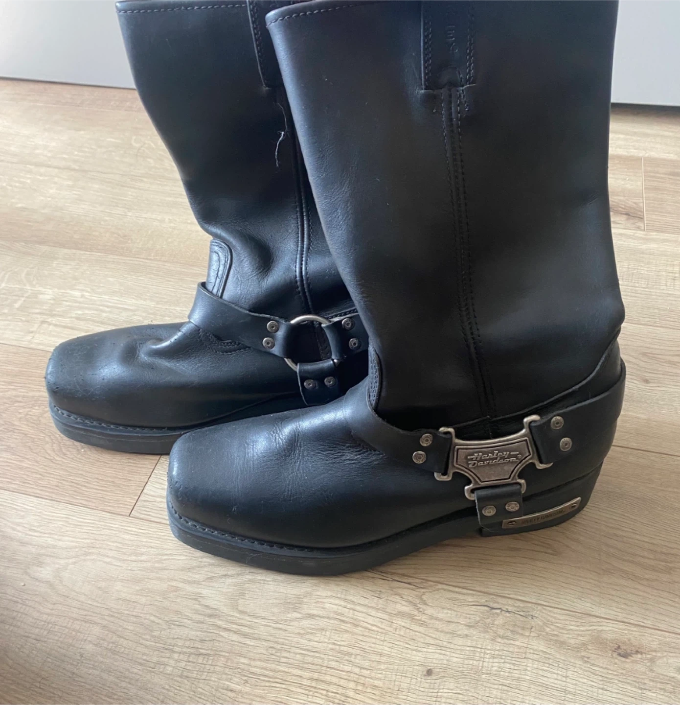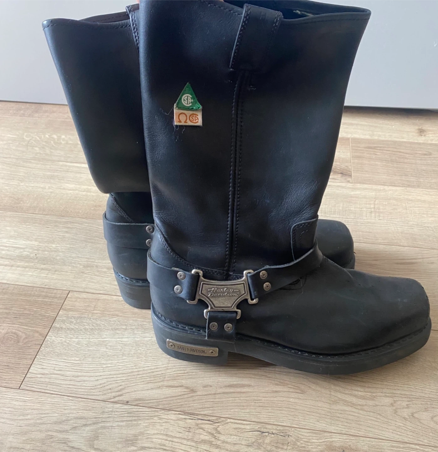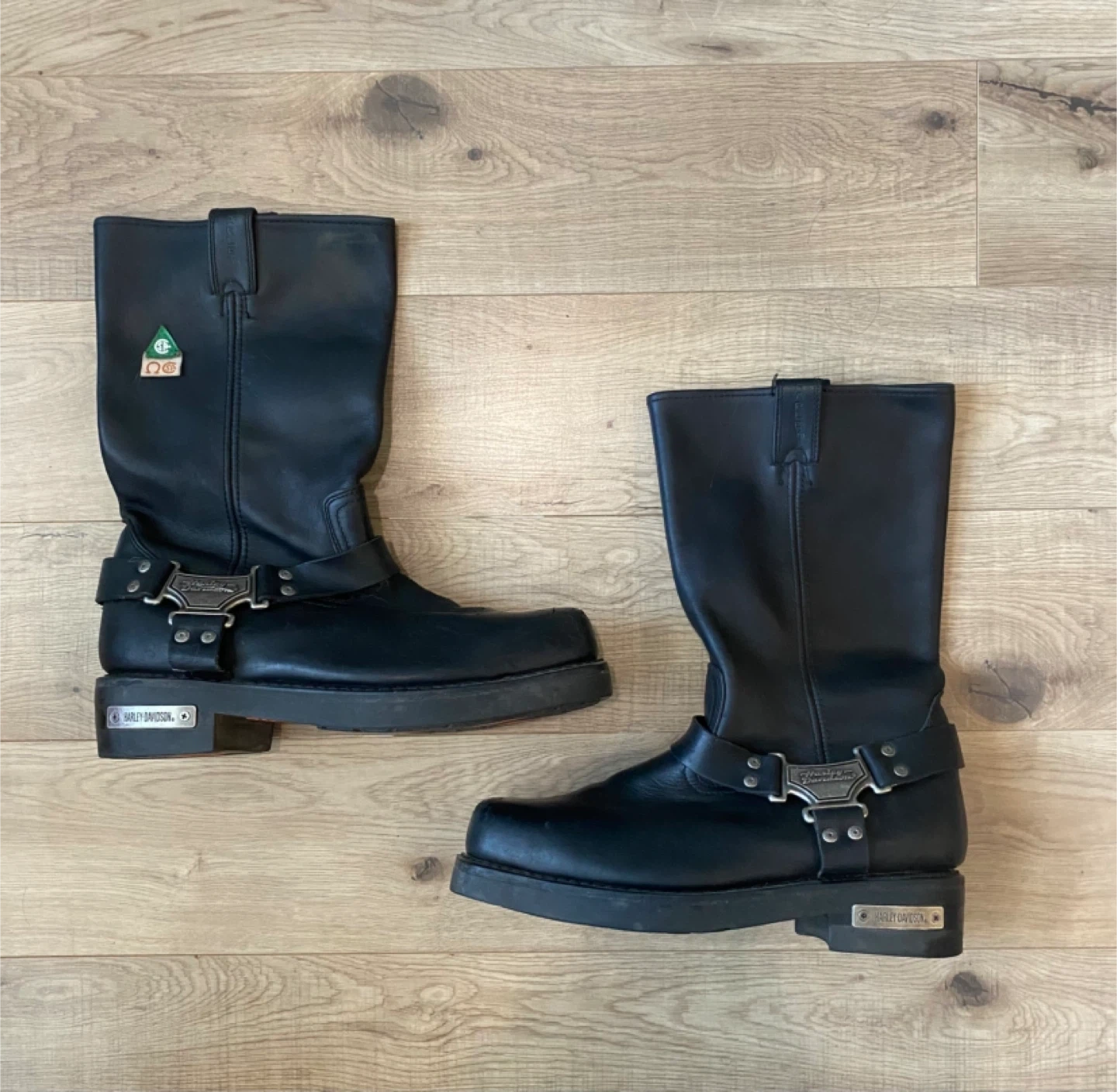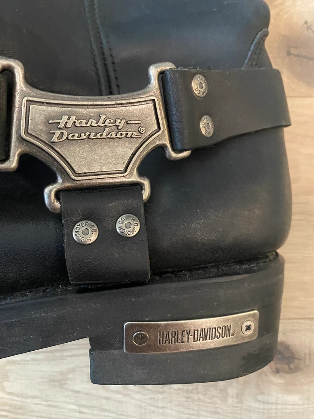 Harley Davidson Leather Biker Boots Mega Harness Black Mens Size 12 Great Condition 💯 $80 Please follow my page ➡️ Thrift Happens YXE for more listings. Thanks! 🫶 G1