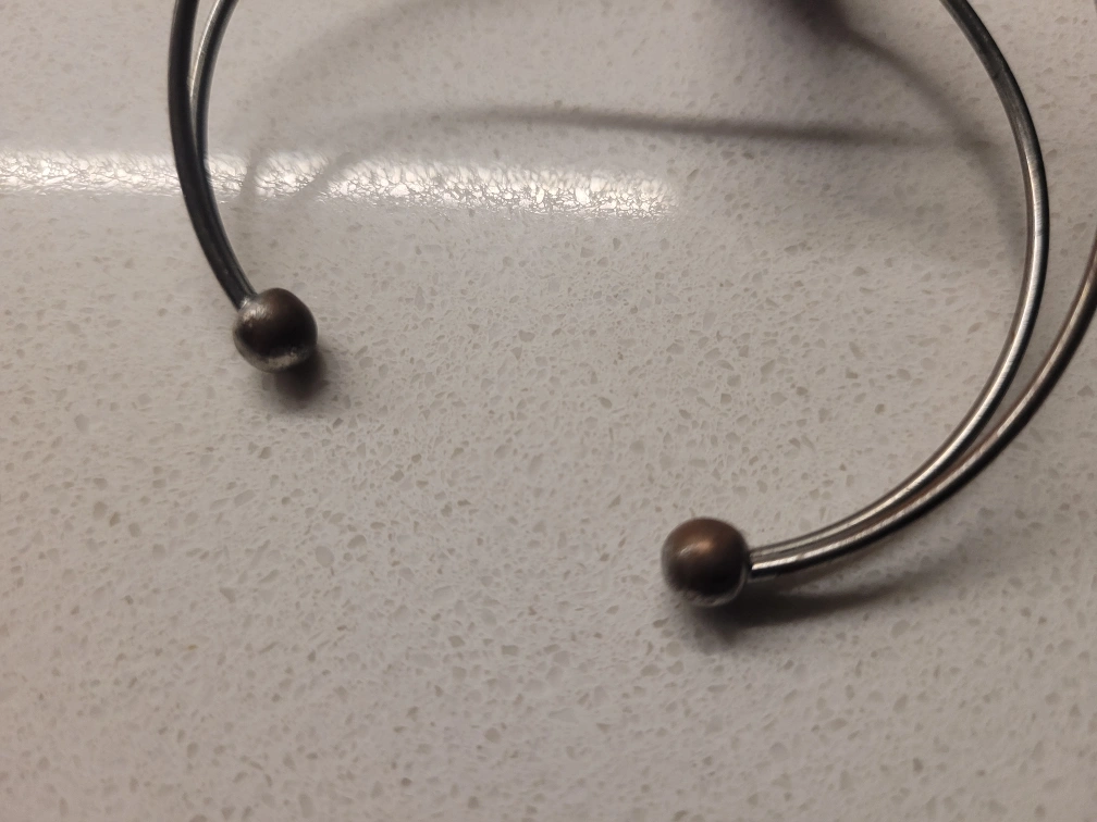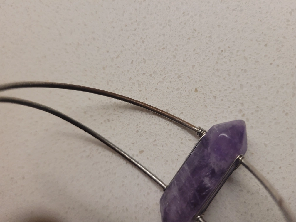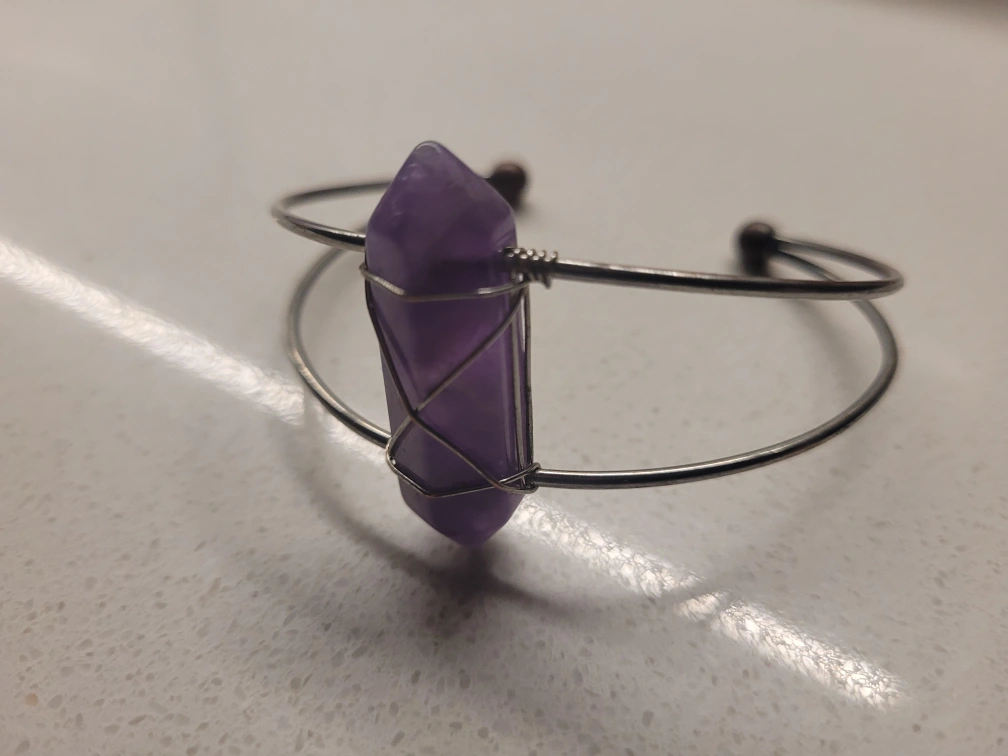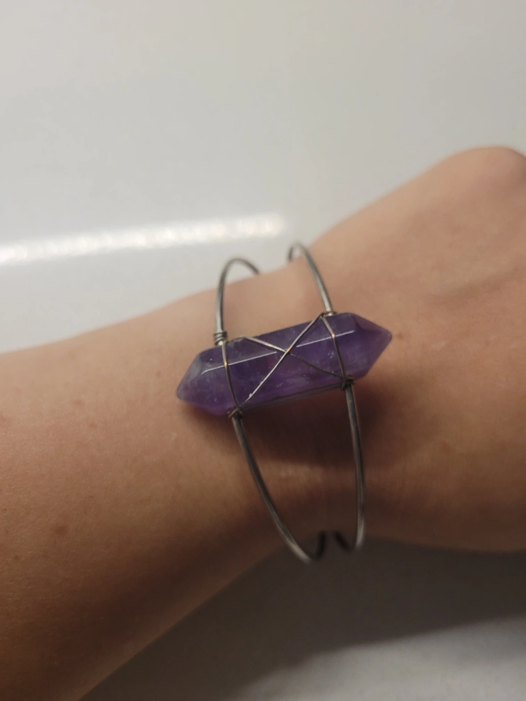 Selling an amethyst cuff bracelet. Inside is slightly tarnished from wear.