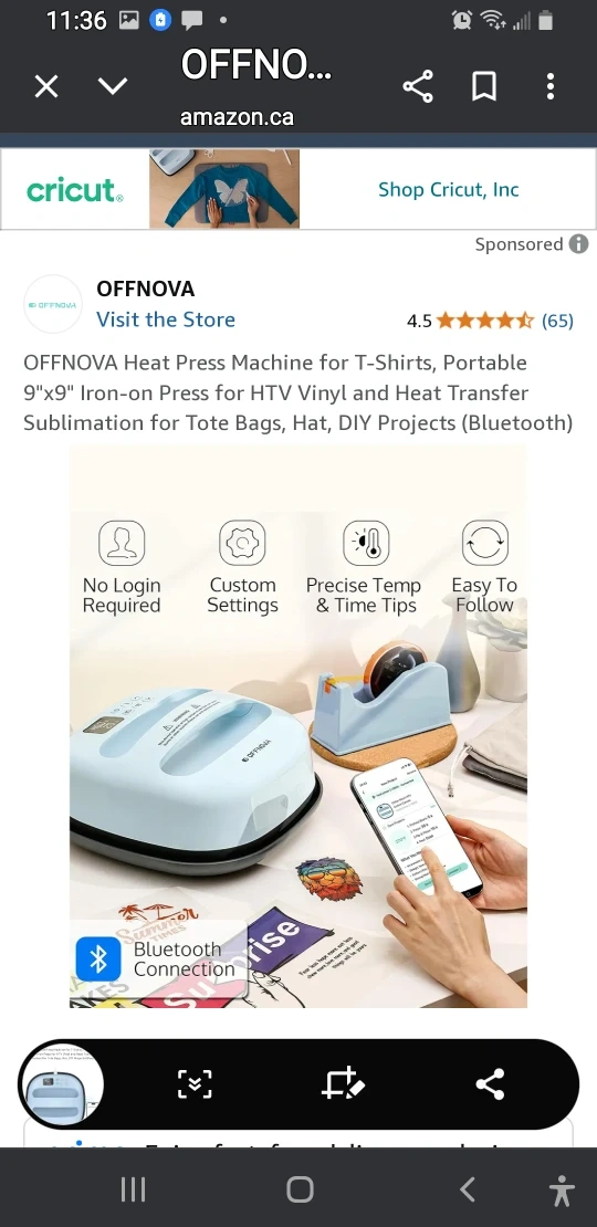 **$55.00 BRAND NEW NEVER USED!*** Selling an OFFNOVA Heat Press Machine for T-shirts. It's a portable 9"x9" iron-on press perfect for HTV vinyl and heat transfer sublimation for tote bags, hats, and DIY projects! It even has Bluetooth connectivity