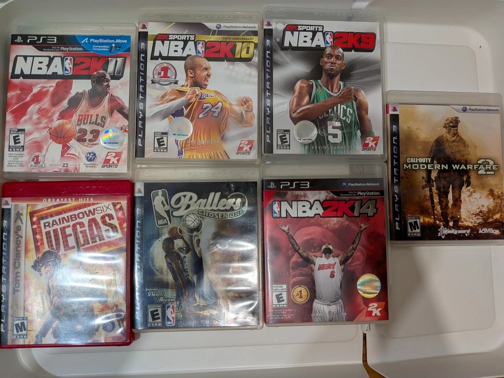 Selling a collection of PlayStation 3 (PS3) games! Titles include: - NBA 2K11 - NBA 2K10 - NBA 2K9 - NBA 2K14 - Ballers Chosen One - Call of Duty Modern Warfare 2 - Tom Clancy's Rainbow Six Vegas $5 each