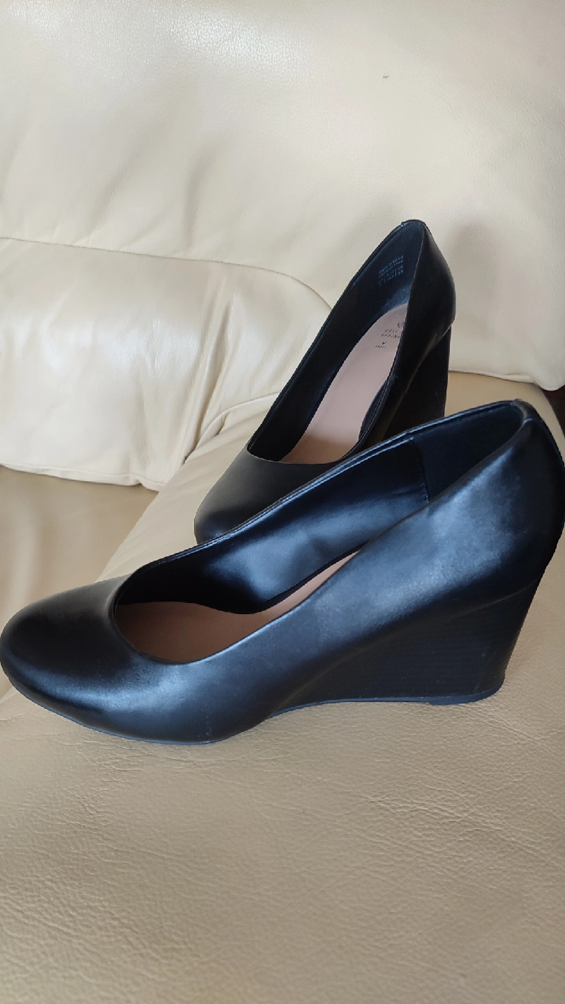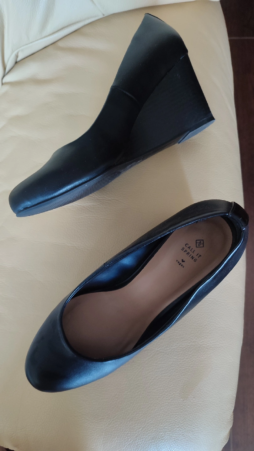 These are a pair of Call It Spring black wedge heels. size 8. only been worn once.