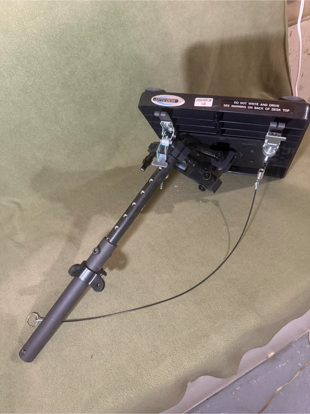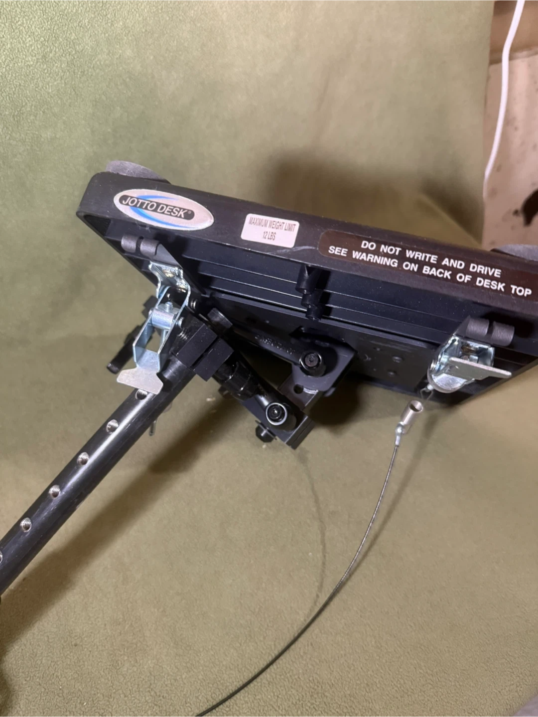 This Jotto Desk is ideal for mounting a laptop in a vehicle! It's in good used condition Perfect for creating a mobile office! Don’t know much about it but what you see is what I got and that’s it ready for your mobile office needs * Sturdy construction * Adjustable angles I've noticed these desks sell for around $200-$400 on Karrot, so I've priced this one to sell! If the ad is up, it's still available! You never know, this might be the desk of your dreams, ready to whisk you away on a whirlwind of productivity!
