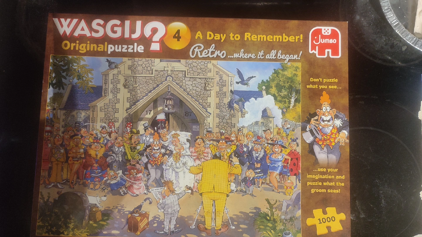 Selling a Wasgij Original 4 'A Day to Remember!' 1000-piece jigsaw puzzle! It's a retro puzzle where it all began. Use your imagination and puzzle what the groom sees!