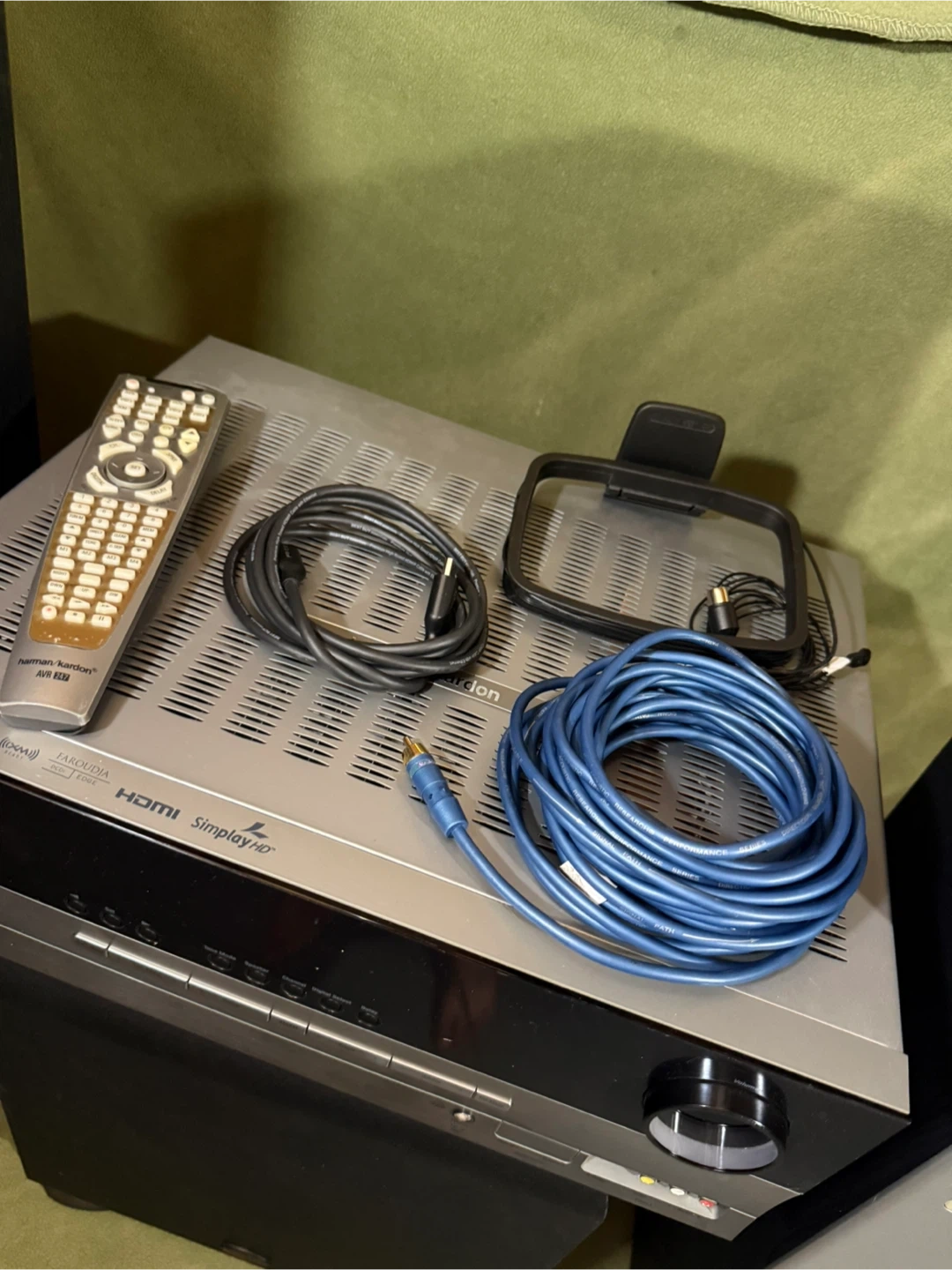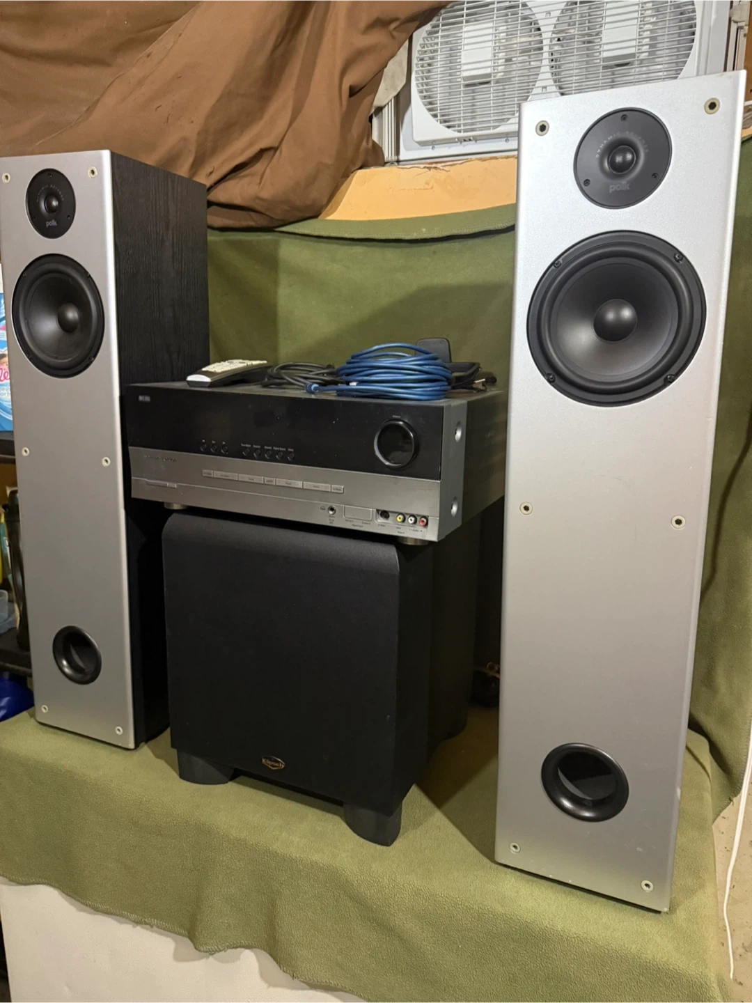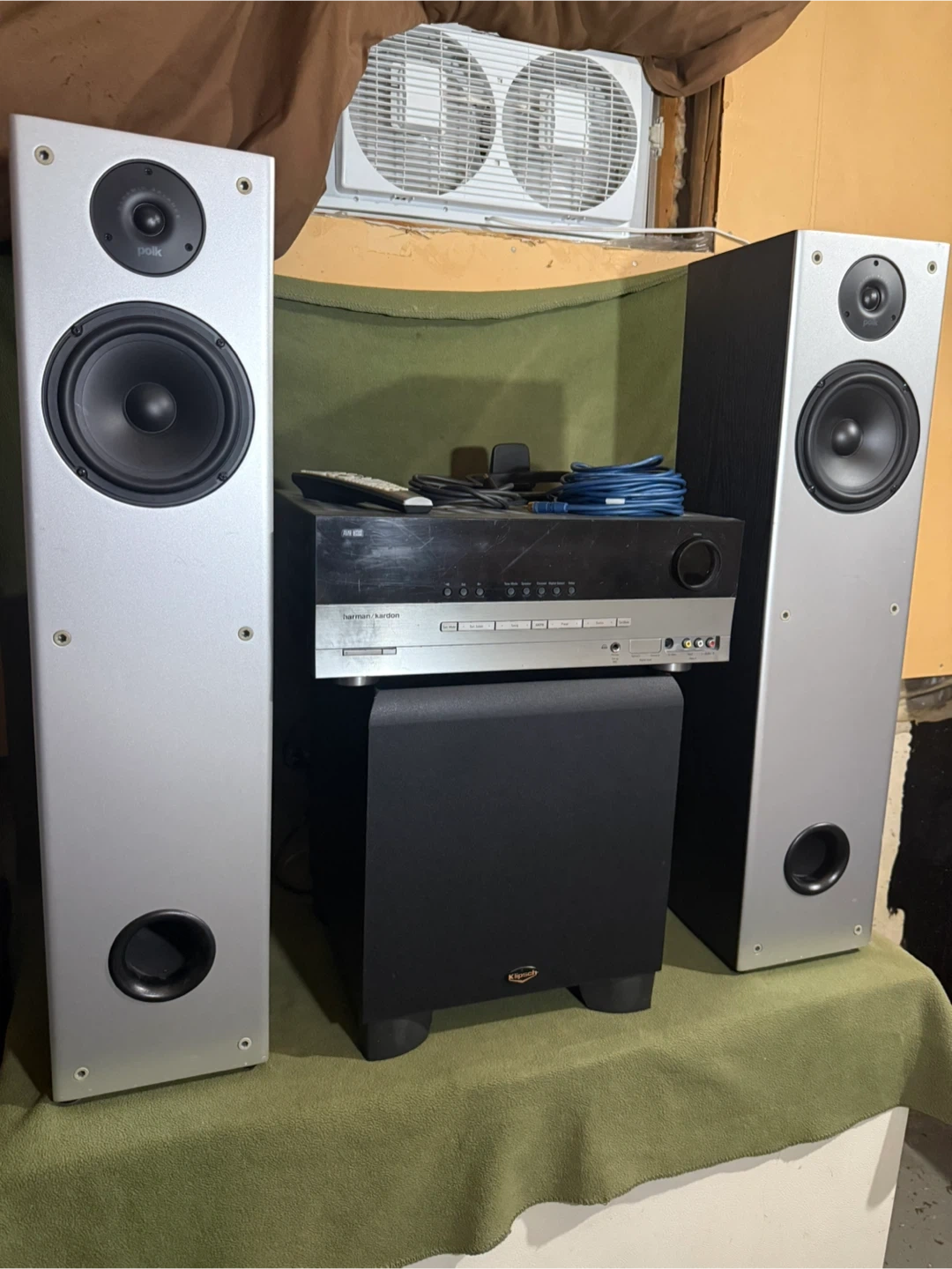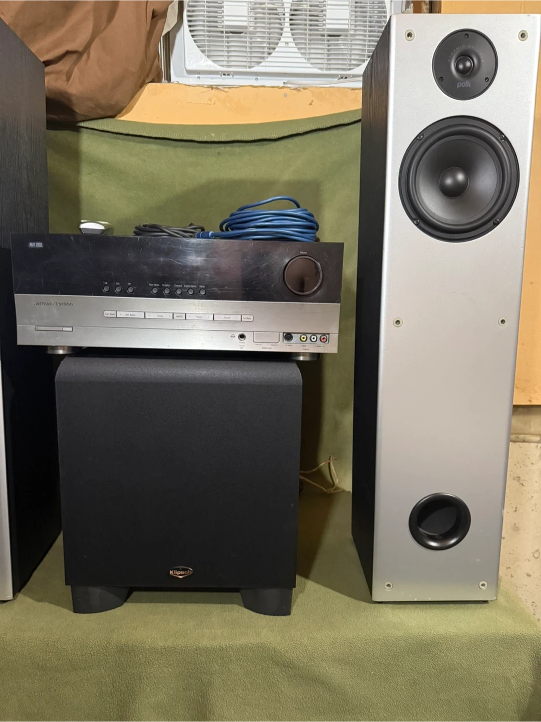 This is a used Harmon Kardon AVR 247 receiver paired with Polk Audio M20 tower speakers and a Klipsch 10” subwoofer, perfect for setting up a home theatre. The system delivers rich, clear audio and deep bass for an immersive listening experience. Please note that as a used item, there may be signs of wear, but the system is in good working condition. Specifications include: - Harmon Kardon AVR 247 Receiver - Polk Audio M20 Tower Speakers - Klipsch 10” Subwoofer I've checked online, and similar setups tend to sell in the $450-$650 range depending on condition and included components. I'm asking $400, which I believe is fair given the quality and performance of this audio system. If the ad's up, it's up for grabs, so no need to ask! Get ready to rock your socks off!
