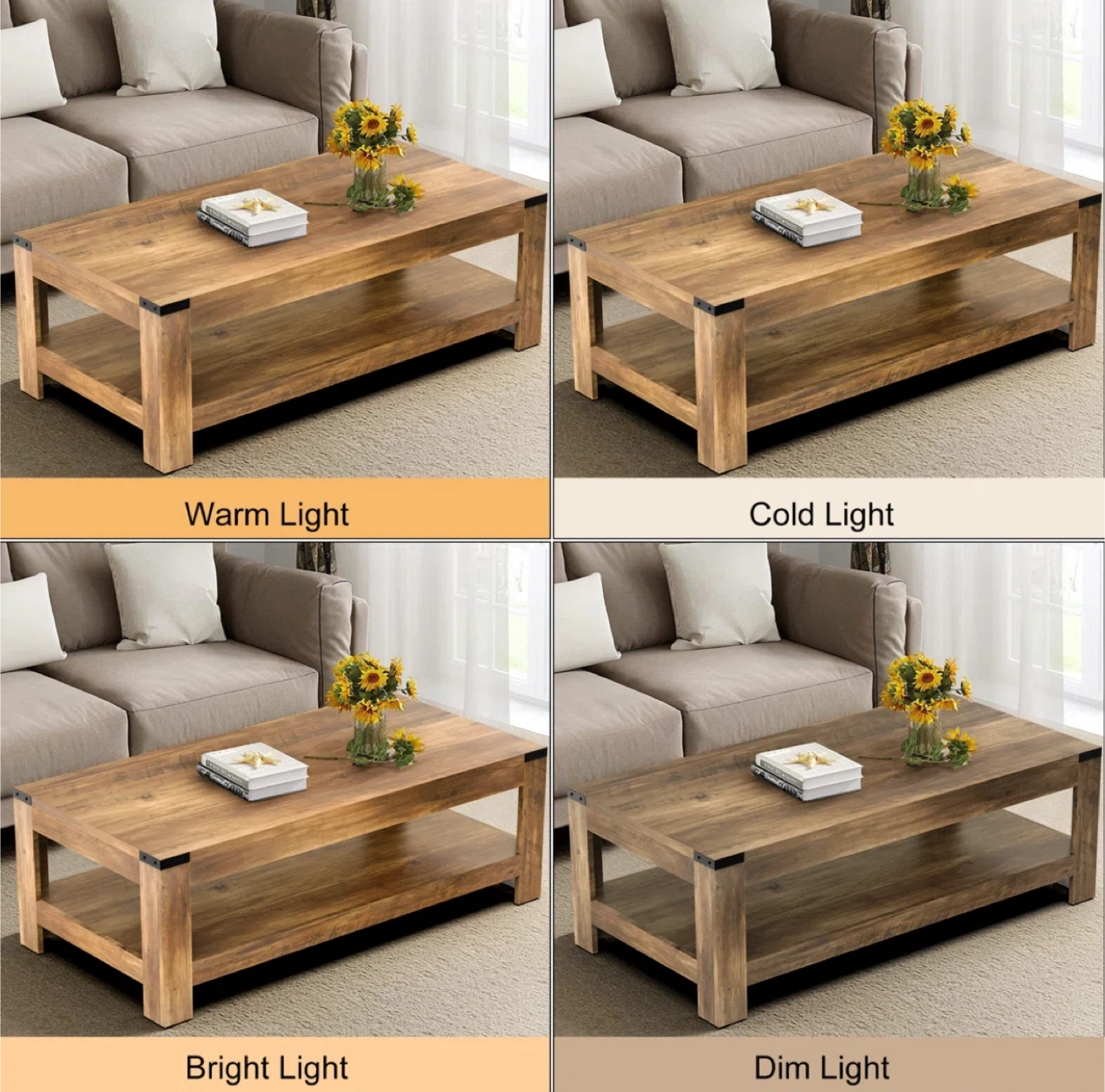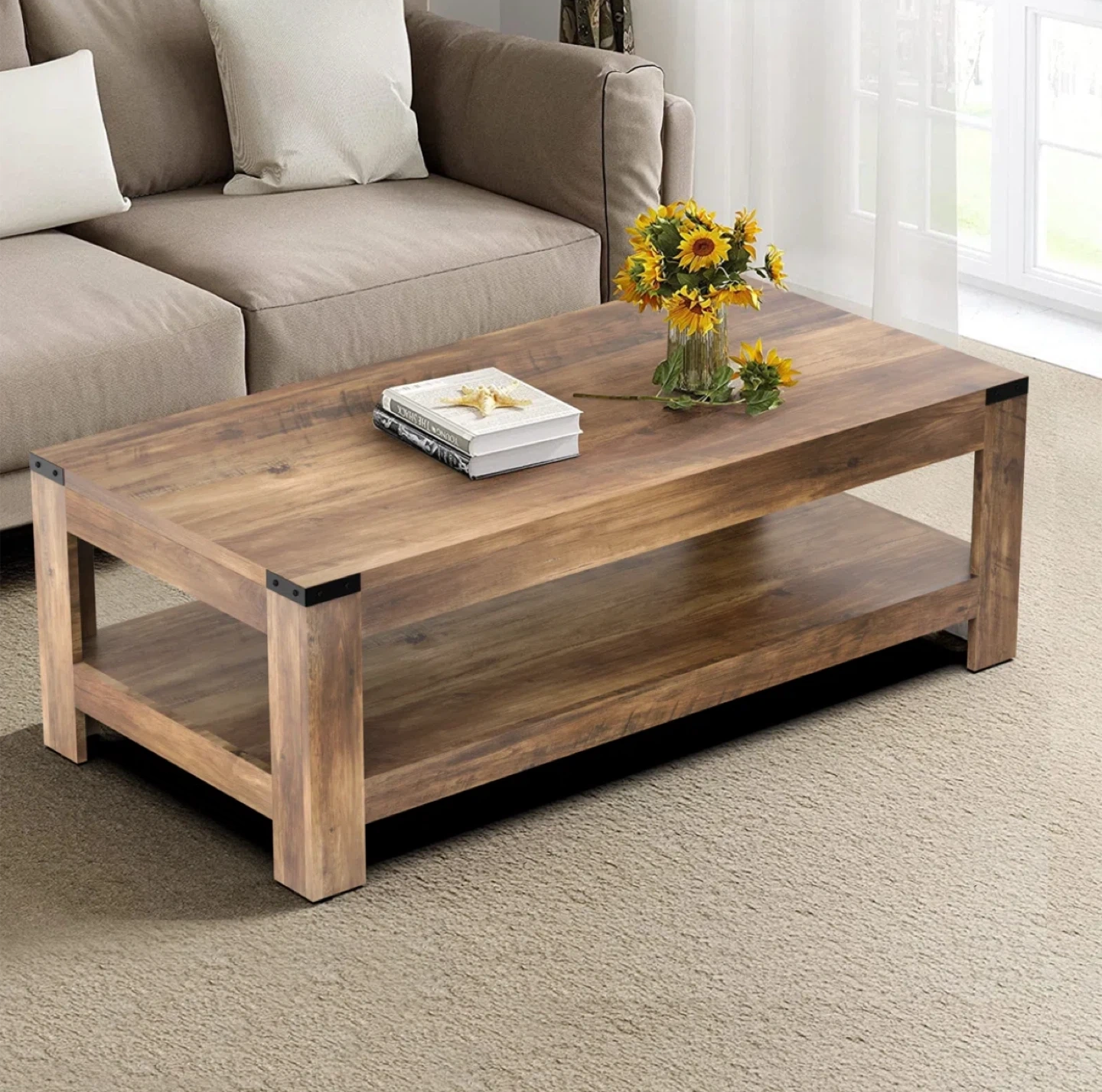 Brown Wood Coffee Table with Shelf