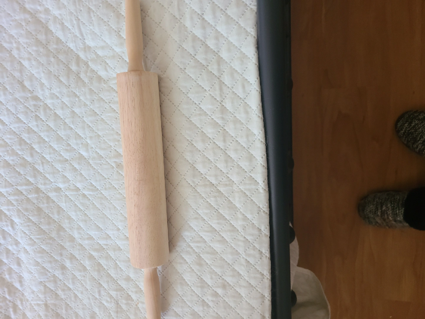 Wooden rolling pin. It's in great shape and ready for your baking needs! Perfect for rolling out dough for cookies, pies, or pastries. It's a kitchen essential!