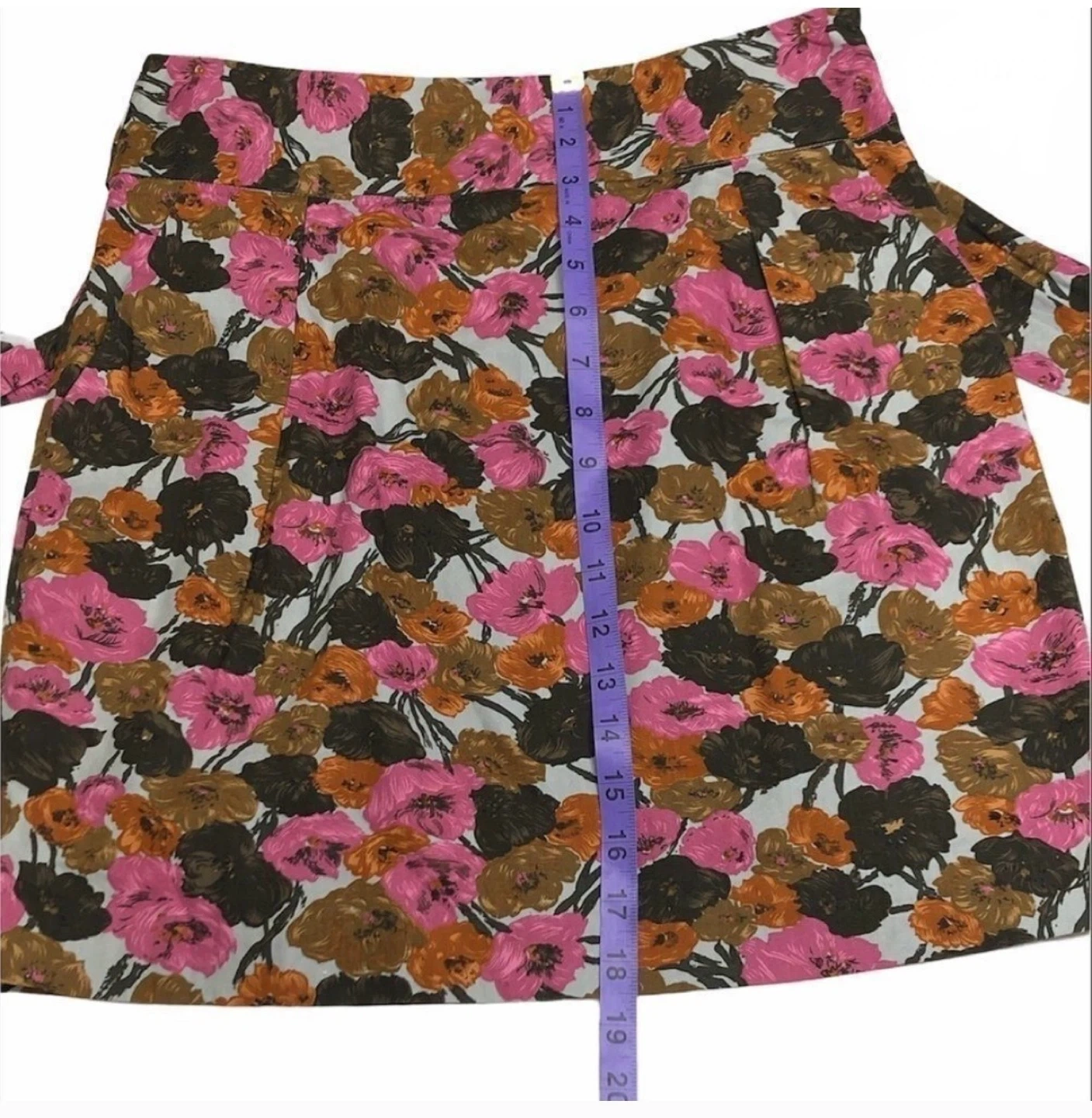 This skirt features a beautiful floral print in shades of pink, brown, and orange. The style number is JA39643. It's made from 100% cotton, making it comfortable and breathable. A stylish addition to any wardrobe!