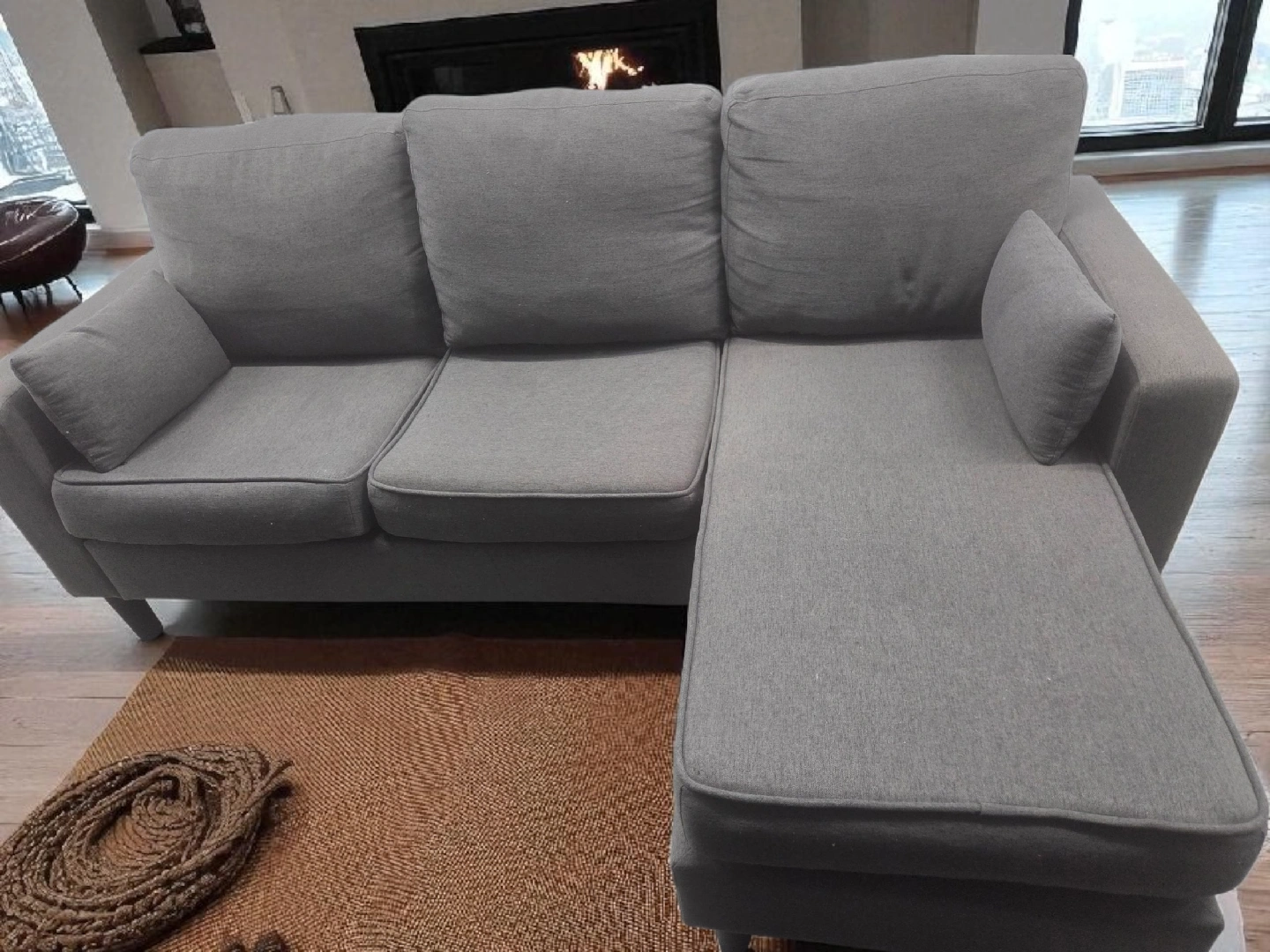Selling a comfy grey sectional sofa with a chaise lounge! It's in great condition and perfect for relaxing or entertaining. The chaise lounge can be positioned on either side of the sofa, making it versatile for any living space. It's a great addition to any home Modern Gray Sectional Sofa – 75” x 50” - $399 (Vancouver