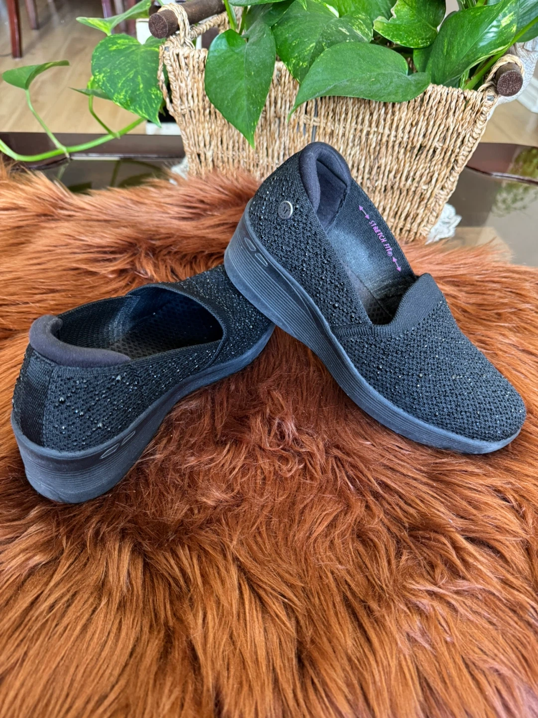Selling a pair of Skechers slip-on shoes! They're in good condition and feature a stretch fit for extra comfort. Perfect for everyday wear! Size 7.5