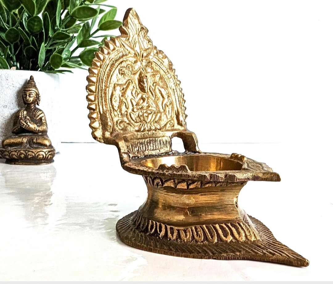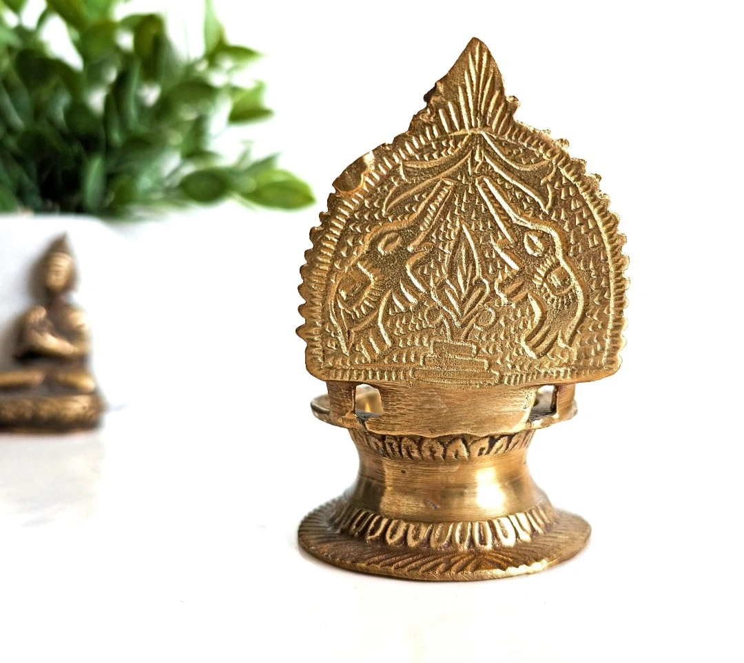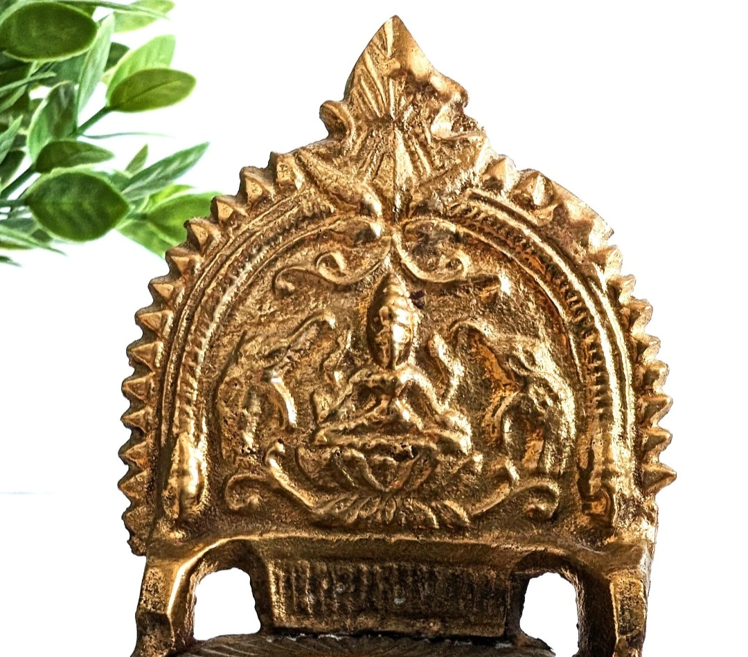 Beautiful brass Kamatchi Vilakku. Perfect for your Pooja room. Measures 3.5 inches in height, and approximately 2.5 inches in diameter. Embossed deity & elephants. Good vintage condition. ๐ PICK UP TOWNLINE HWY 2 AREA ๐ CASH is preferred please โบ๏ธ