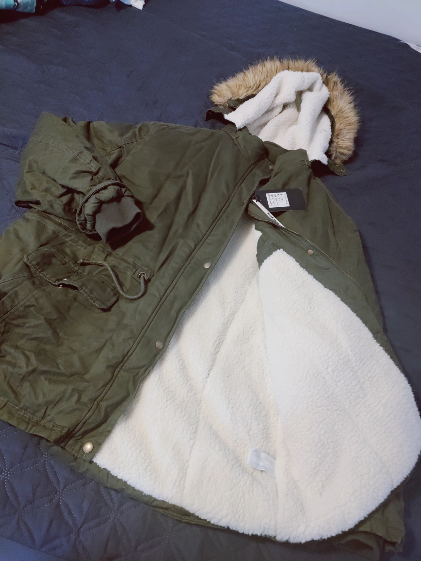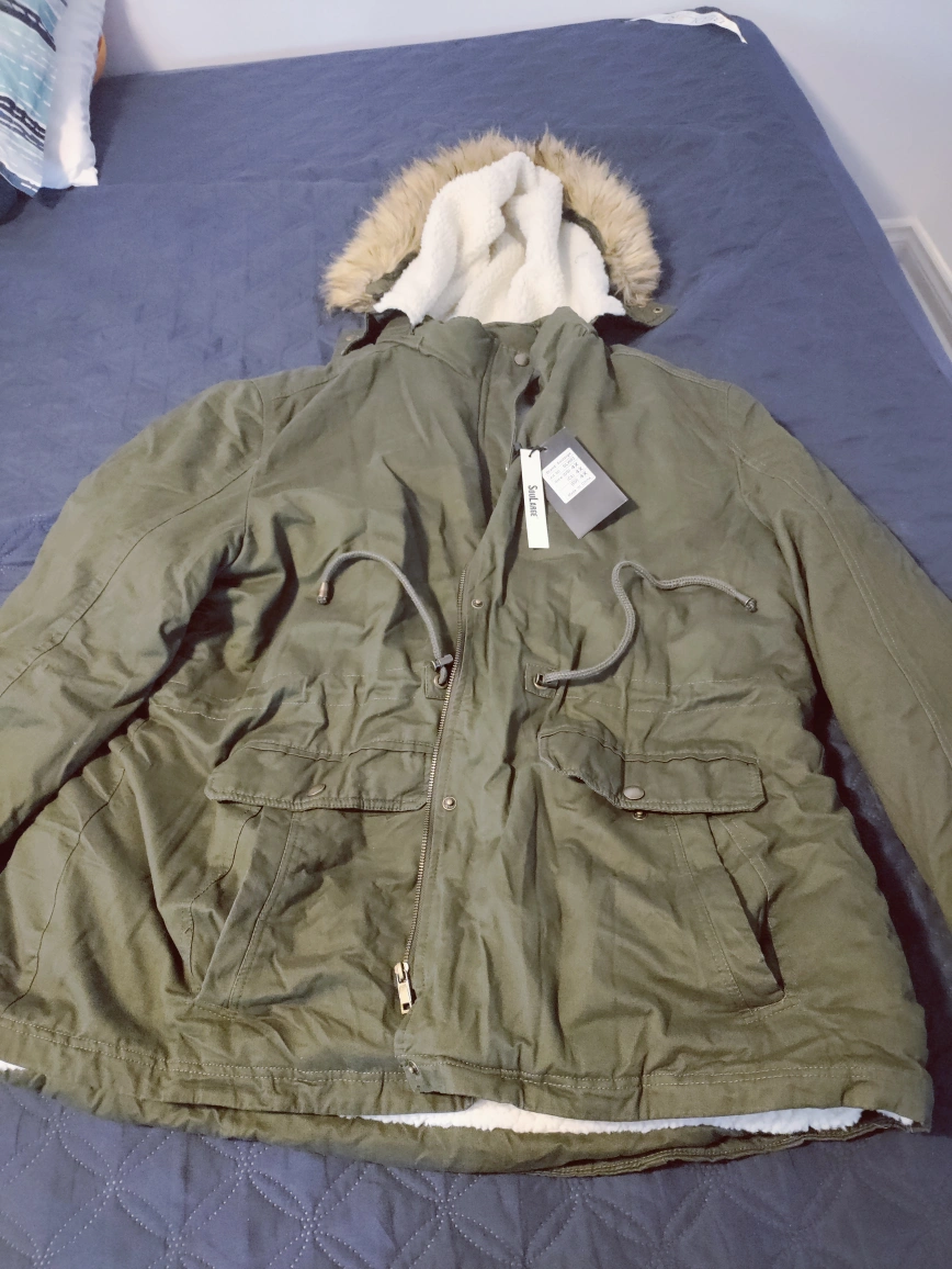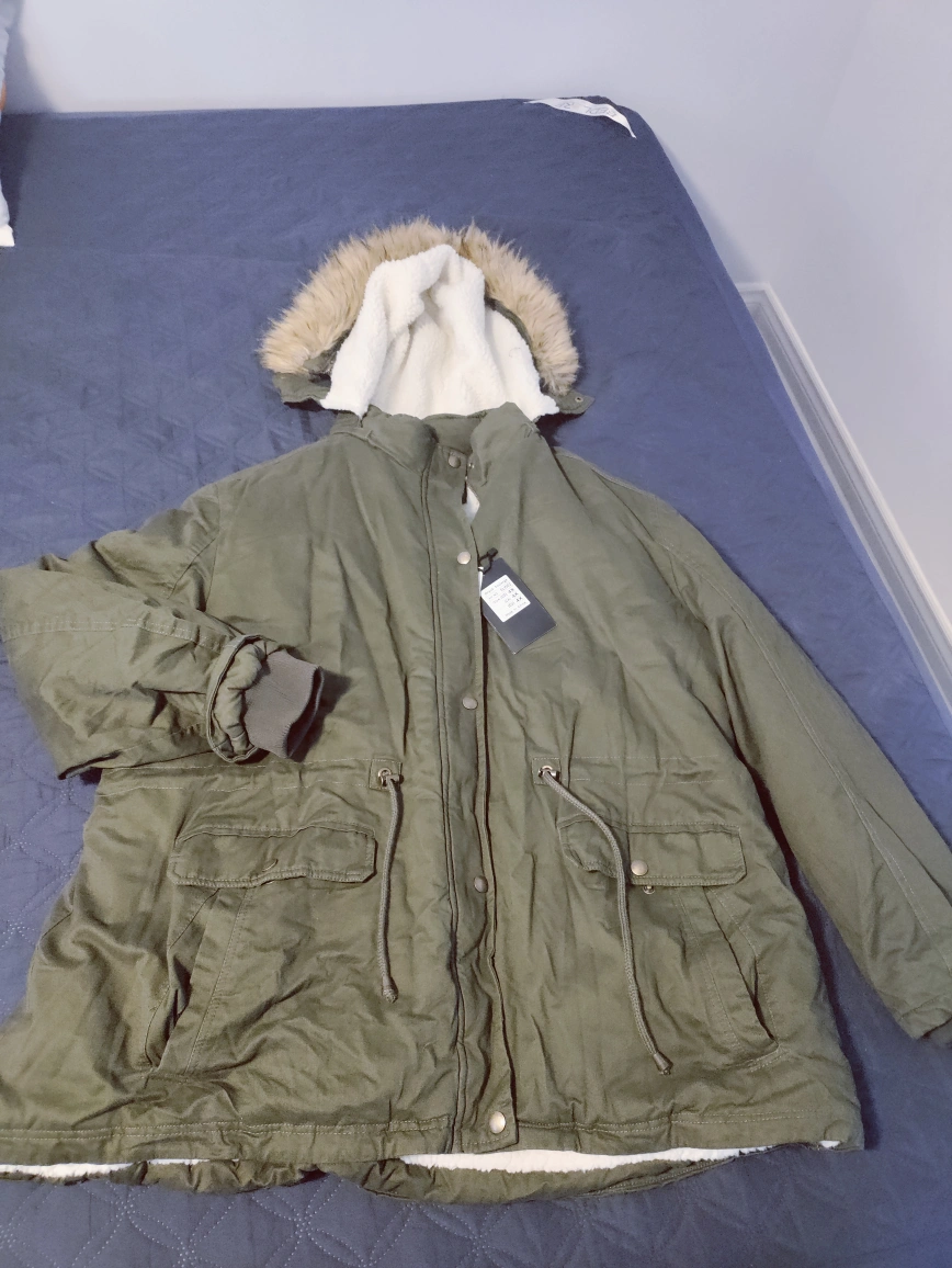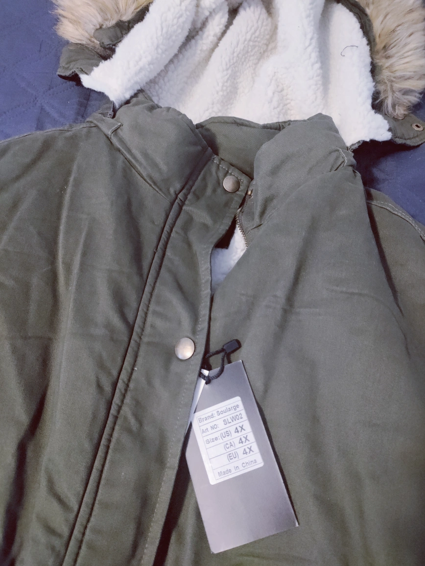 kindly look all the pictures. This is a brand new Soularge winter parka! It's a size 4X and comes in a lovely olive green colour. Perfect for staying warm this winter season!