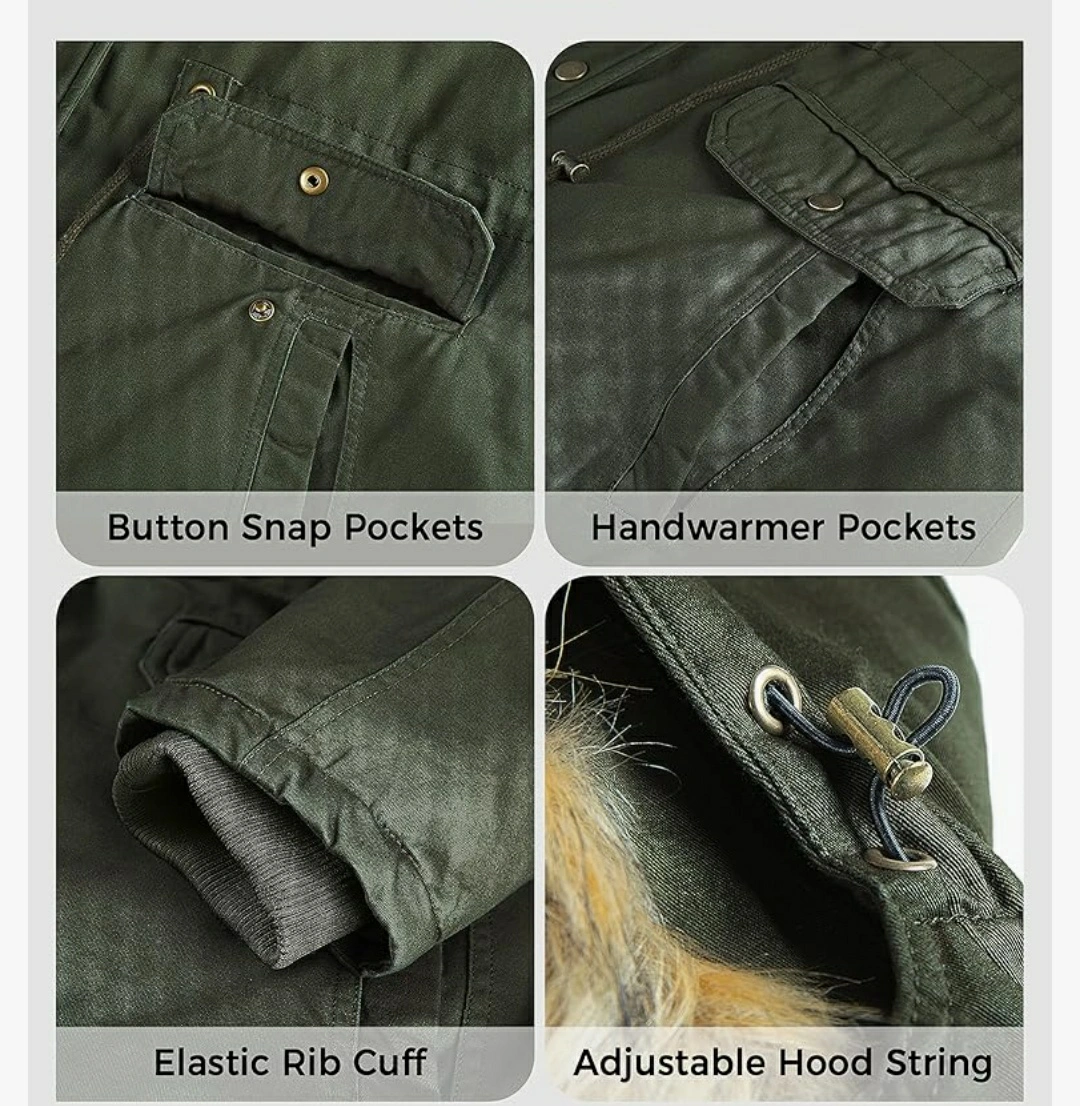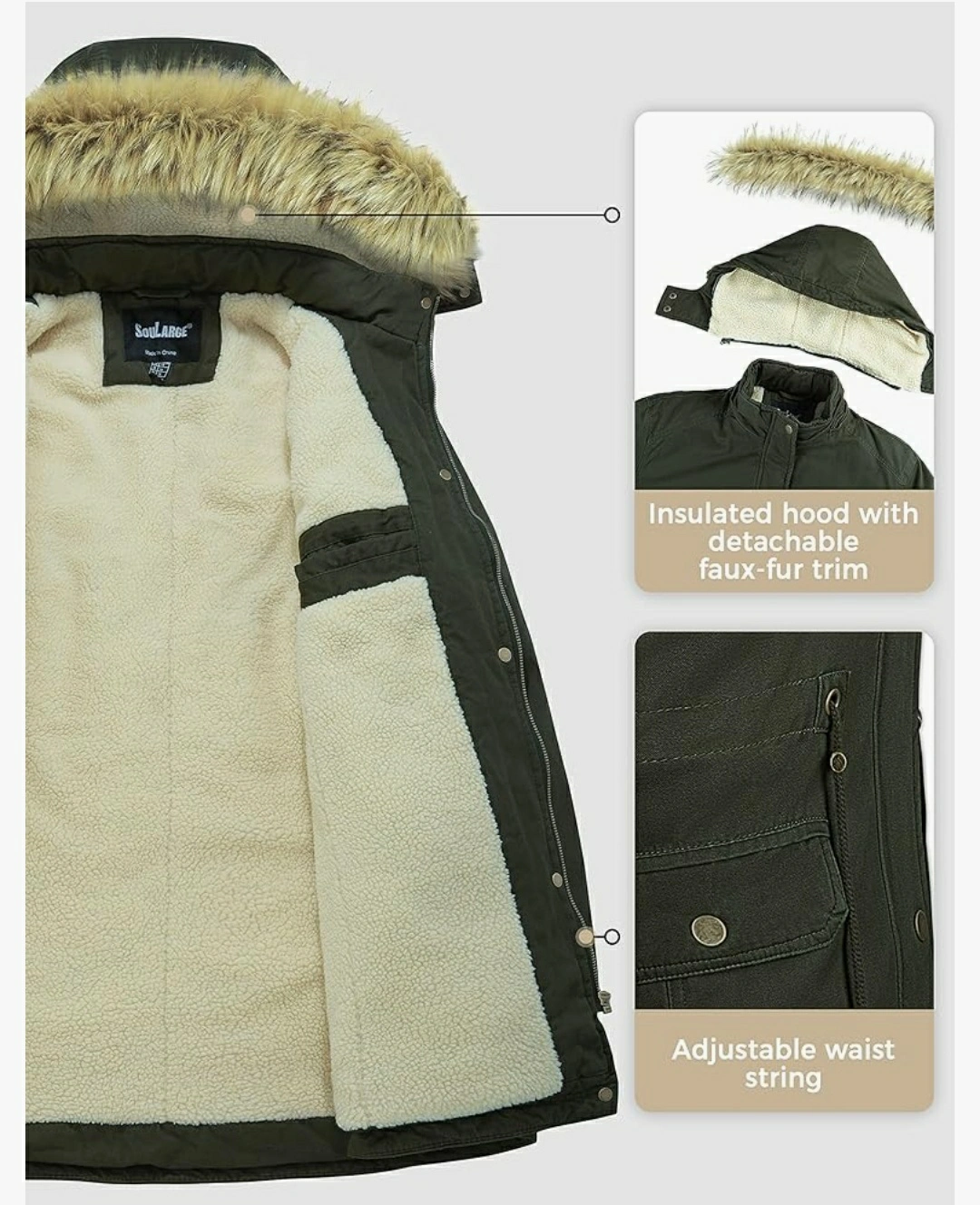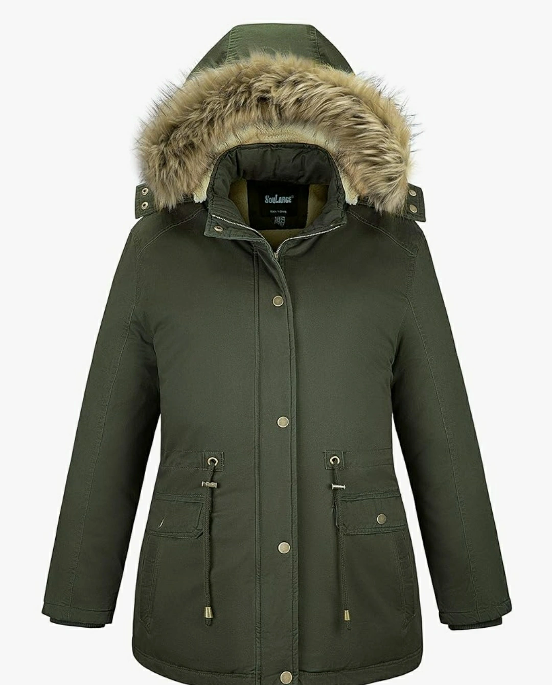 kindly look all the pictures. This is a brand new Soularge winter parka! It's a size 4X and comes in a lovely olive green colour. Perfect for staying warm this winter season!