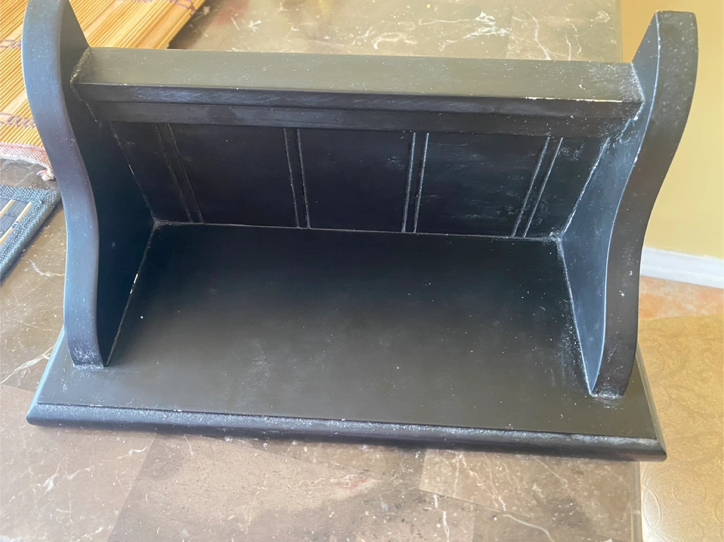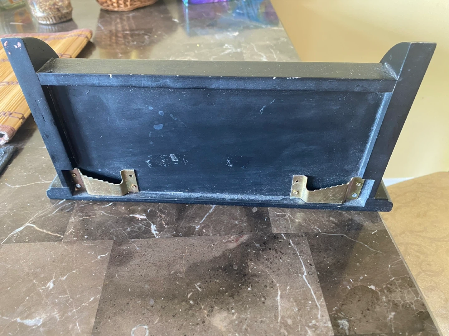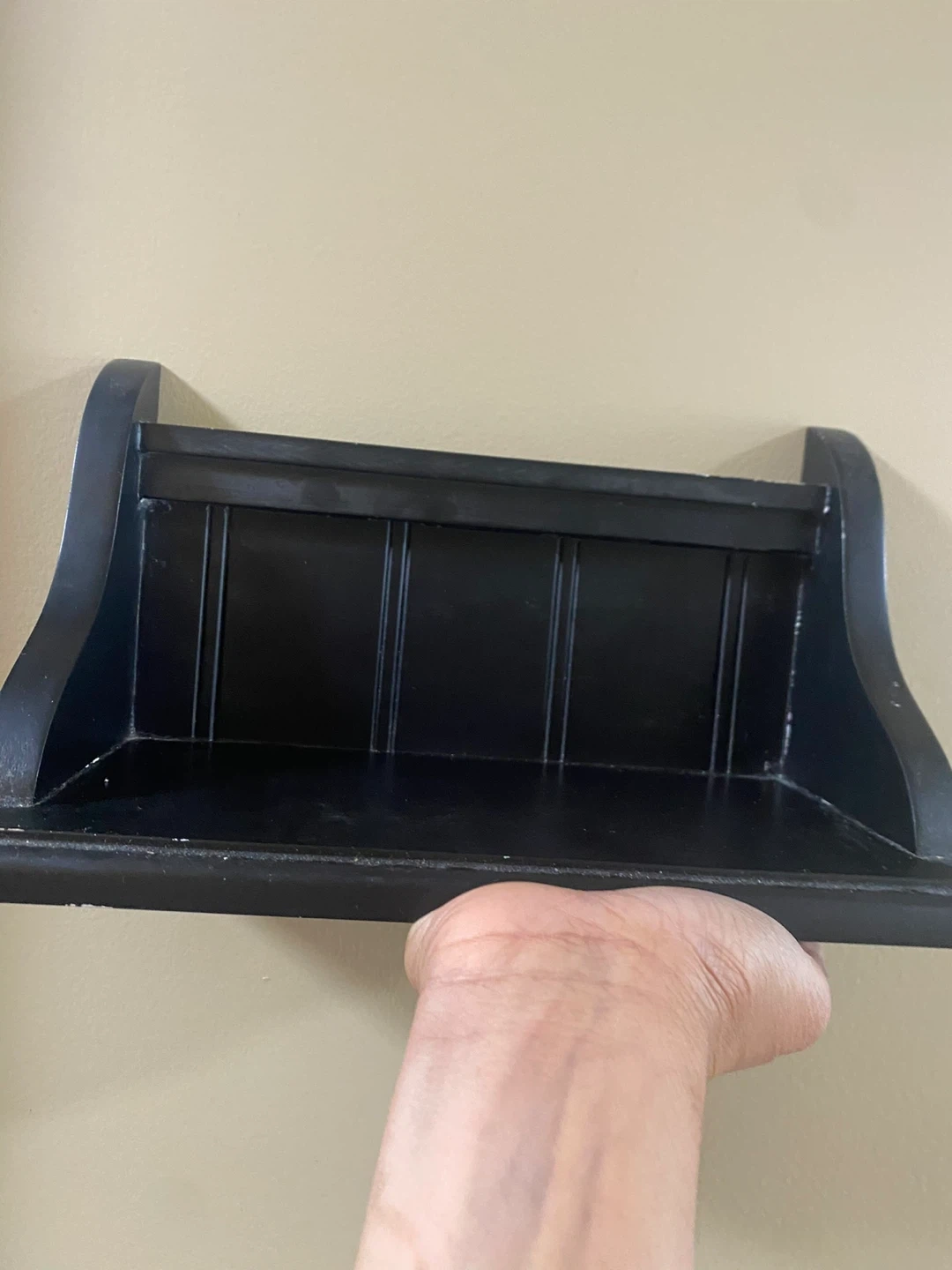 Selling a black wooden wall shelf. It's in good condition and ready to add a touch of style to your home. Perfect for displaying small items or adding extra storage in any room.suitable for small things such as display or phone or a small book
