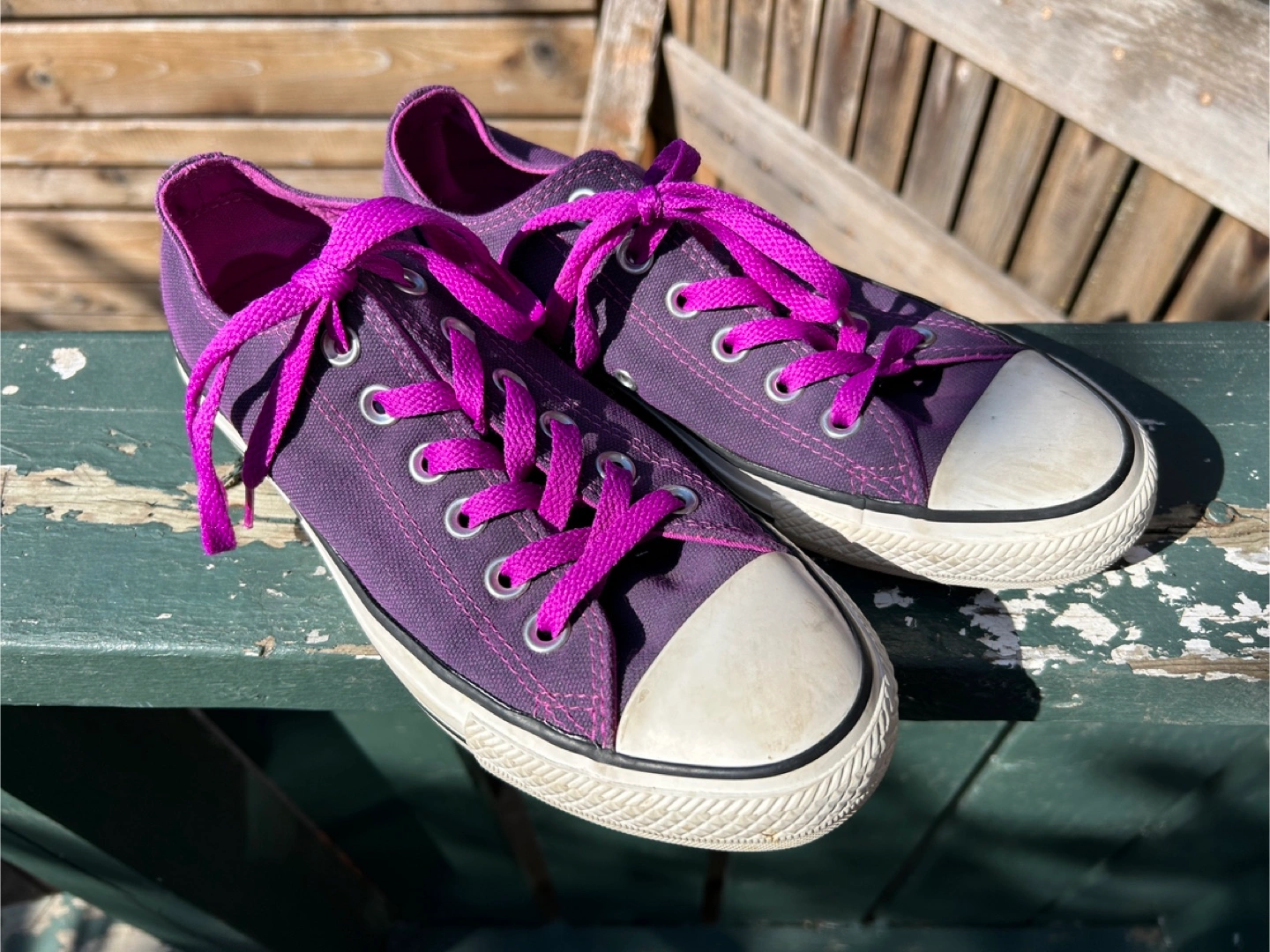 Selling a pair of Converse All Star low top sneakers! They're in a lovely purple colour with matching purple laces, but I'll also include a pair of white laces if you want to switch it up. The size is women's US 8 / UK 6 / EUR 39 / 24.5 cm. They're in good condition, ready for a new home!