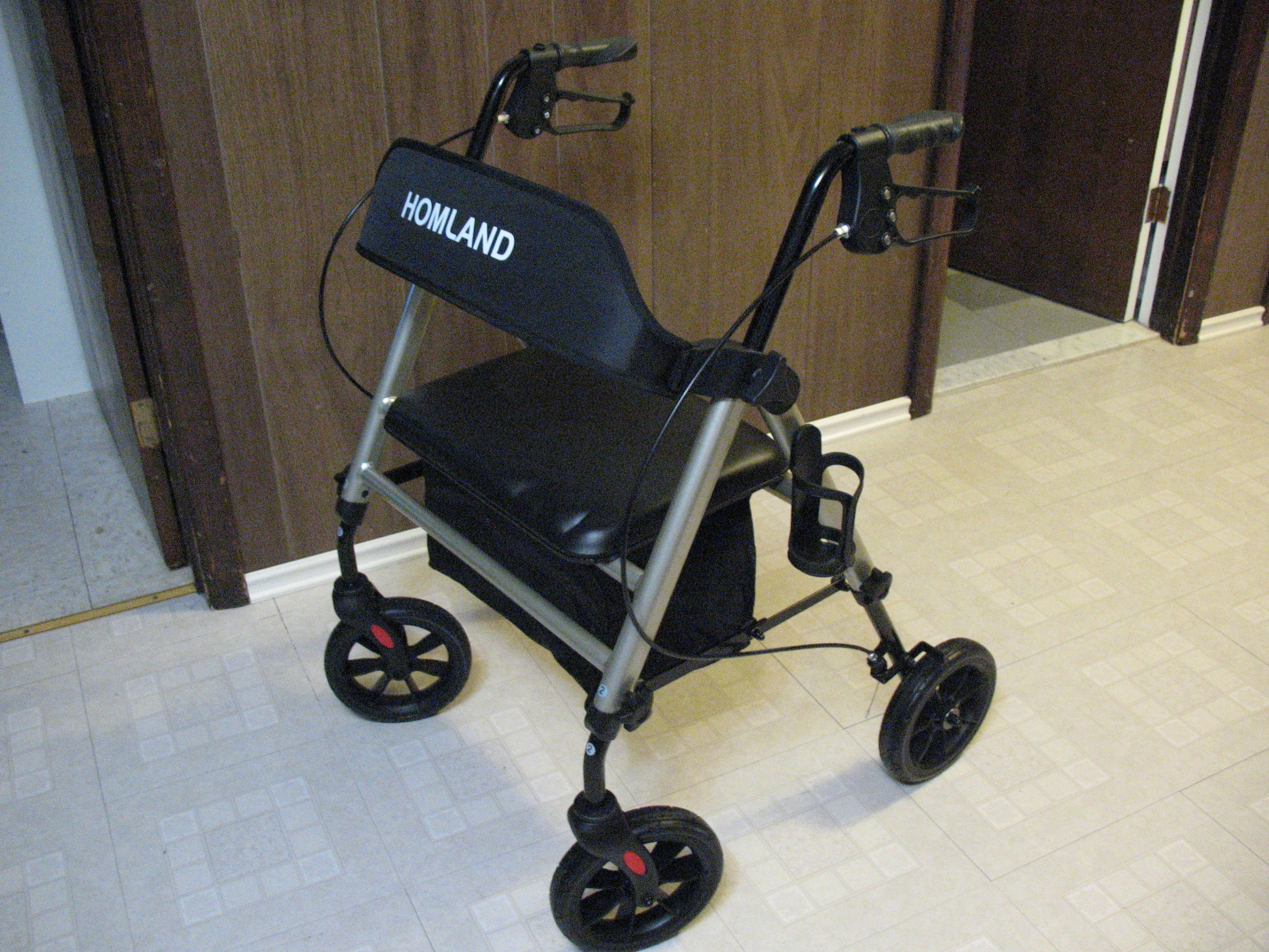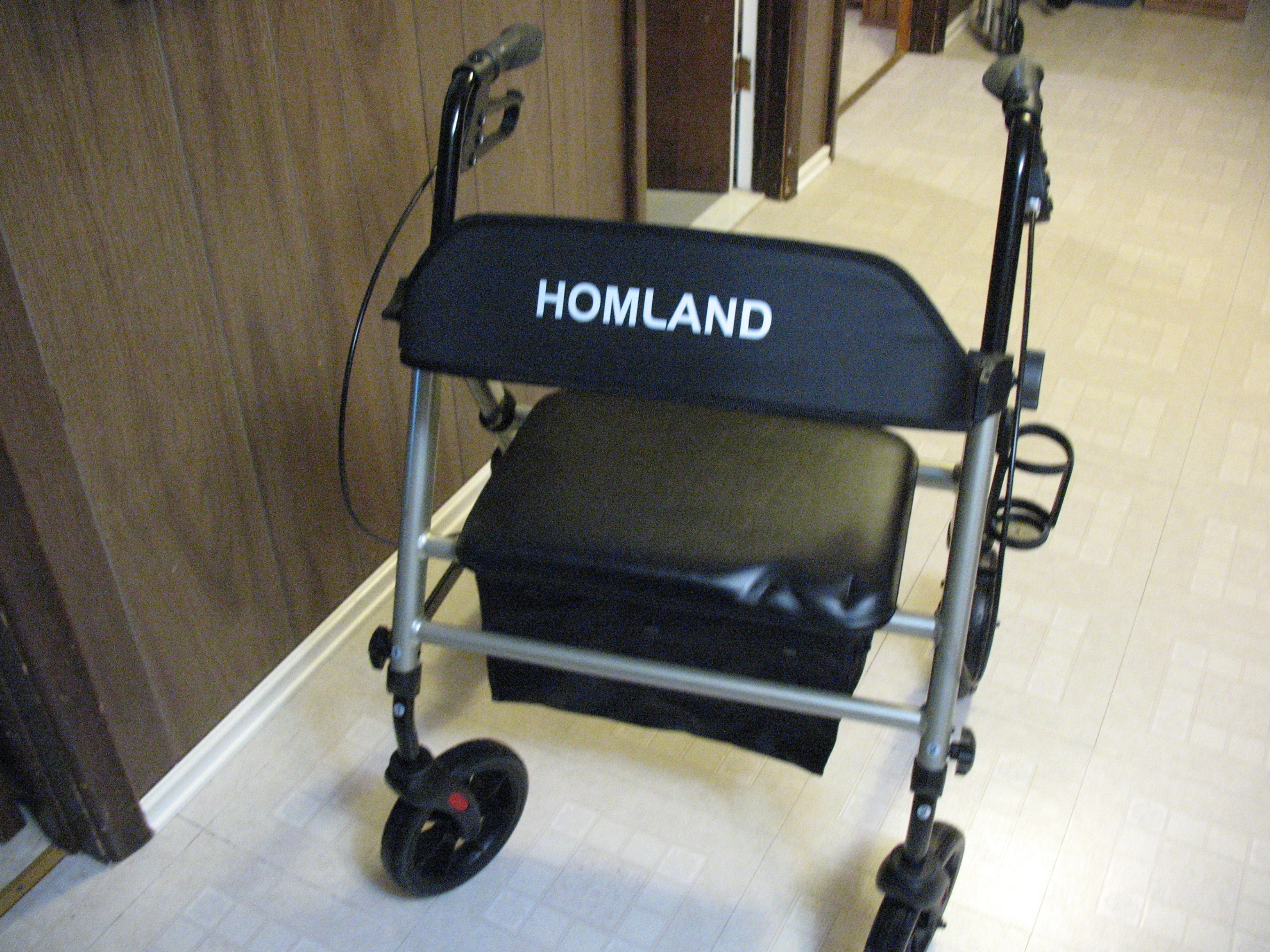 HOMELAND Rollator/Walker, BRAND NEW, never used. * includes comfortable seat and storage area * Original cross-folding design * Lightweight and easy to fold * Height adjustable handles * Soft, padded foam seat * engineered with a reinforced frame and double support bars * supporting up to 350 pounds * Adjustable seat and handle heights accommodate users from 4'7" to 6'6" * Reliable Braking System * Pinch-Proof Folding Point Design * Ergonomic Hand Grips, soft grips reduce hand fatigue * 8-inch puncture-proof wheels, expertly crafted for smooth movement indoors and out $150 647 709-6005