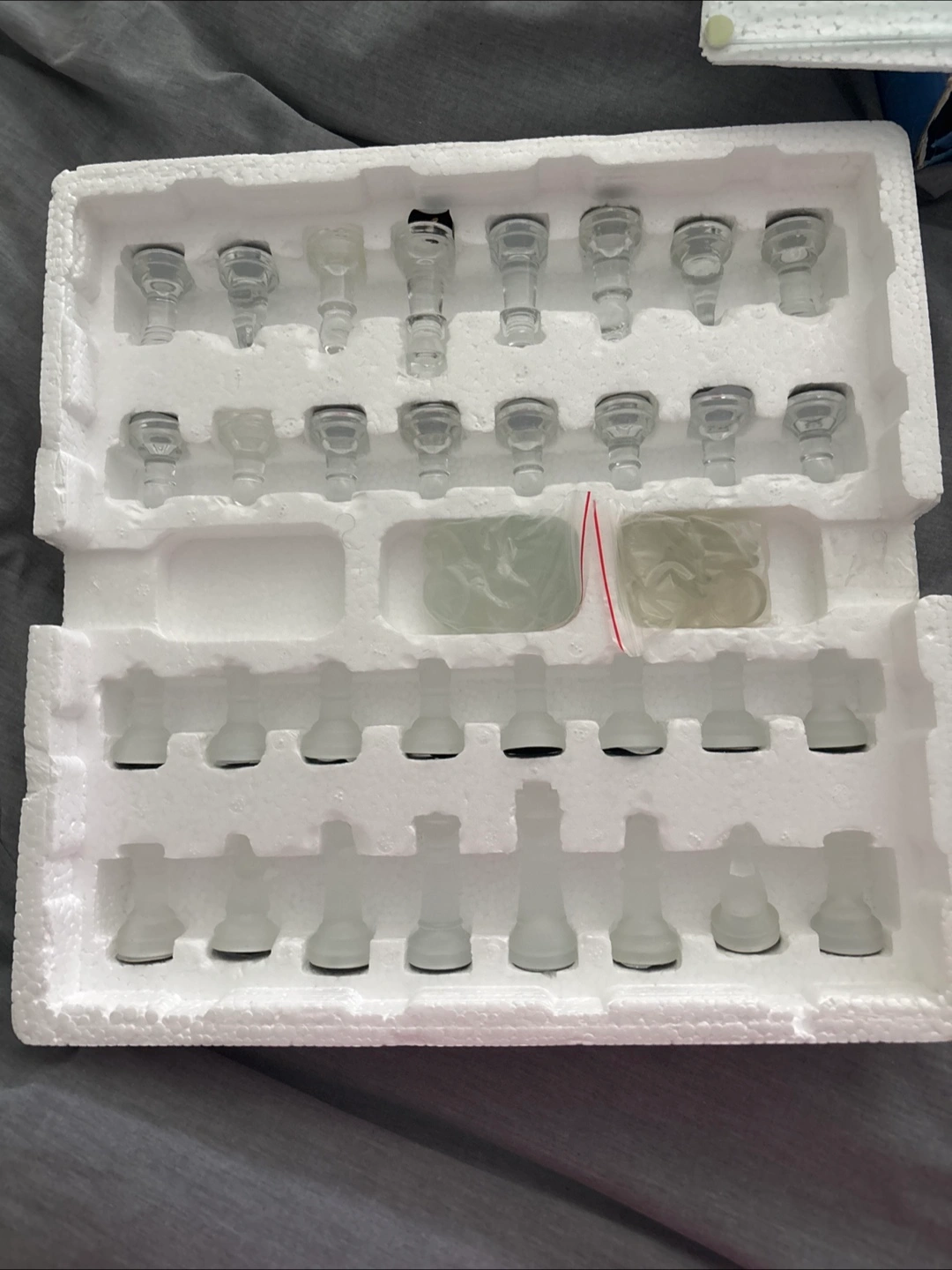 Selling a limited edition Elegant Glass Chess & Checker Set. It features a solid glass design with a bevelled chessboard measuring 13.75" x 13.75". The set includes 32 glass chessmen with 1" tall kings and 26 glass checker pieces. It comes in its original box with the styrofoam inserts to keep everything safe and organized. The retail price was US$49.99