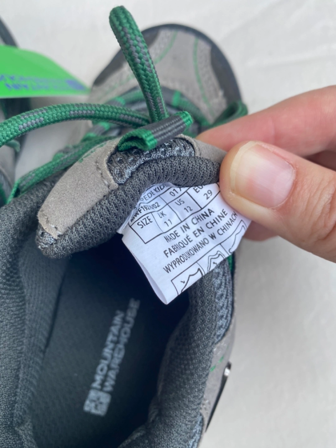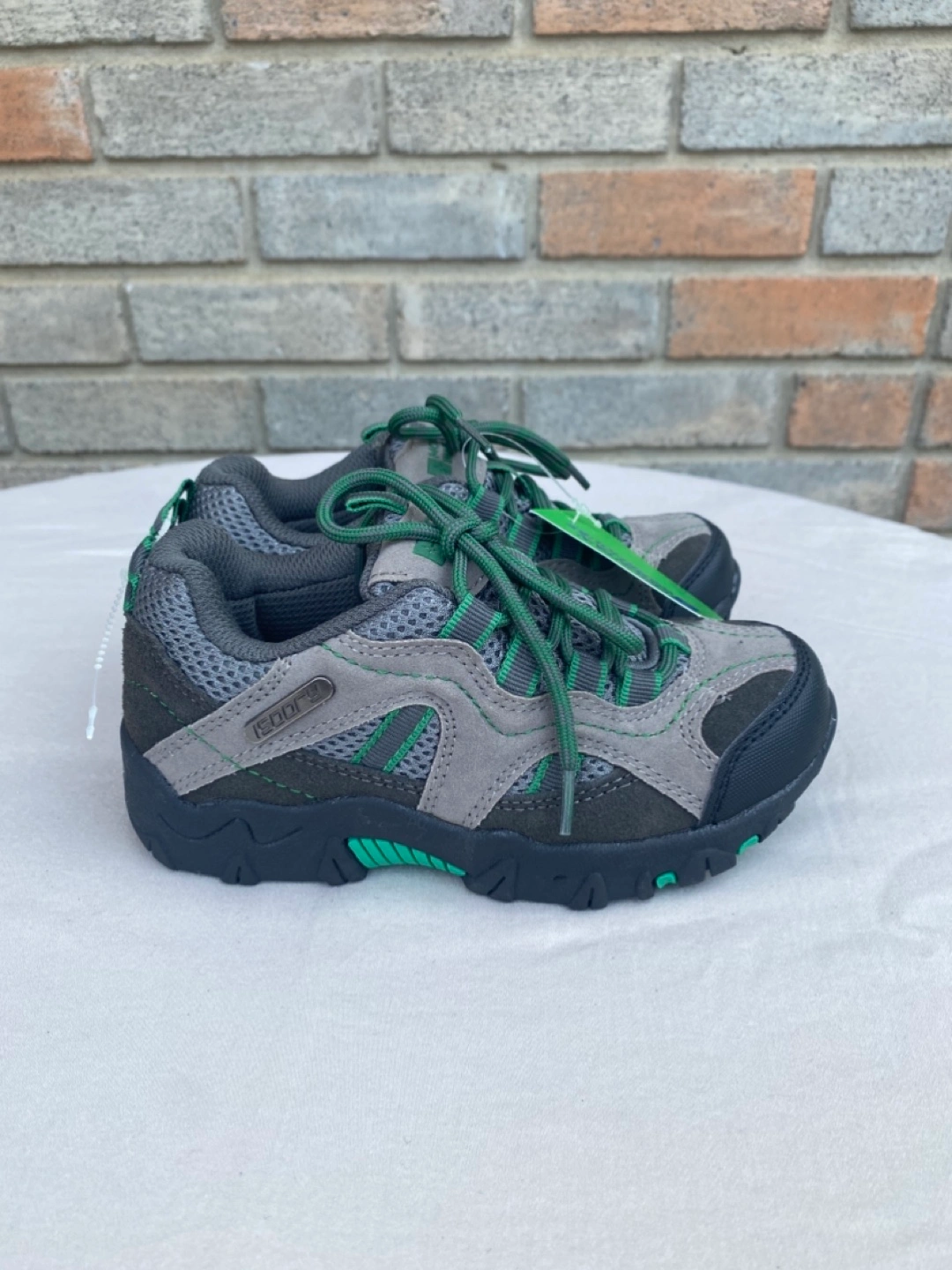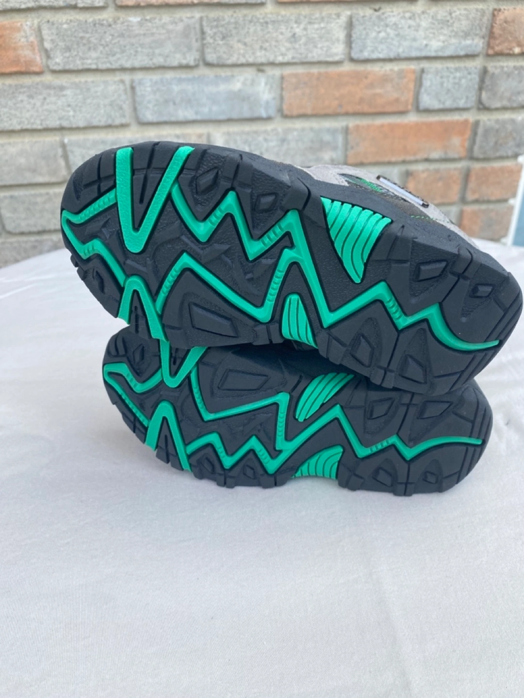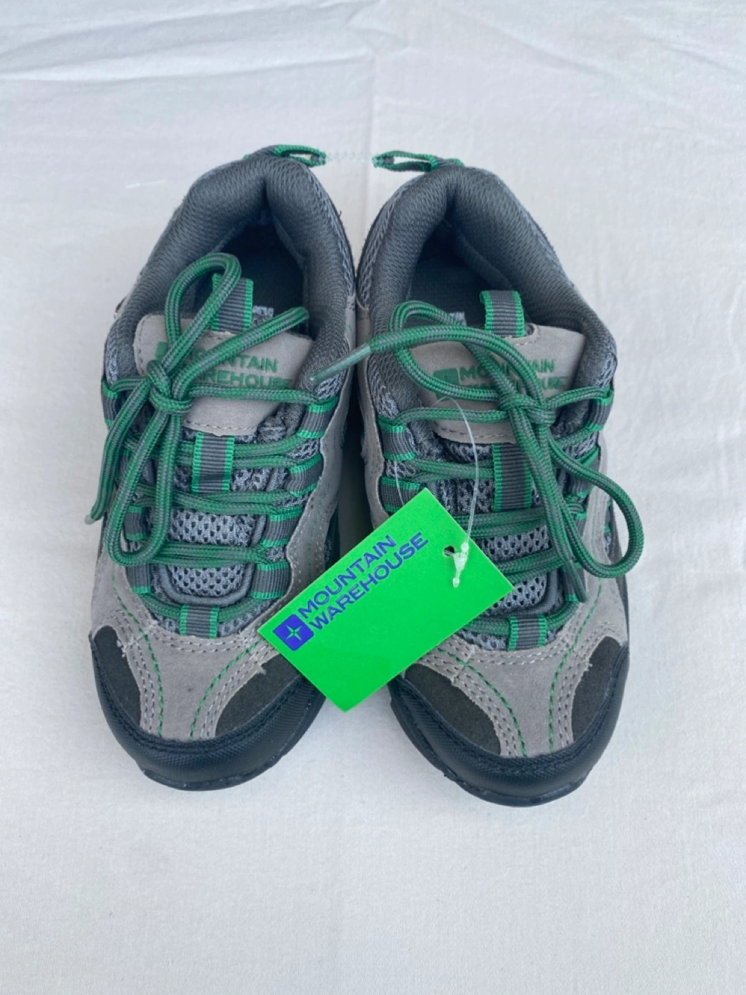 These Mountain Warehouse kids' hiking shoes are brand new with tags! They're a stylish grey colour with green accents and laces. The size is US 12 / UK 11 / EU 29. Perfect for your little one's outdoor adventures From clean, pet-free, smoke-free home Pick up only in Acadia SE Price is firm Please check my other ads