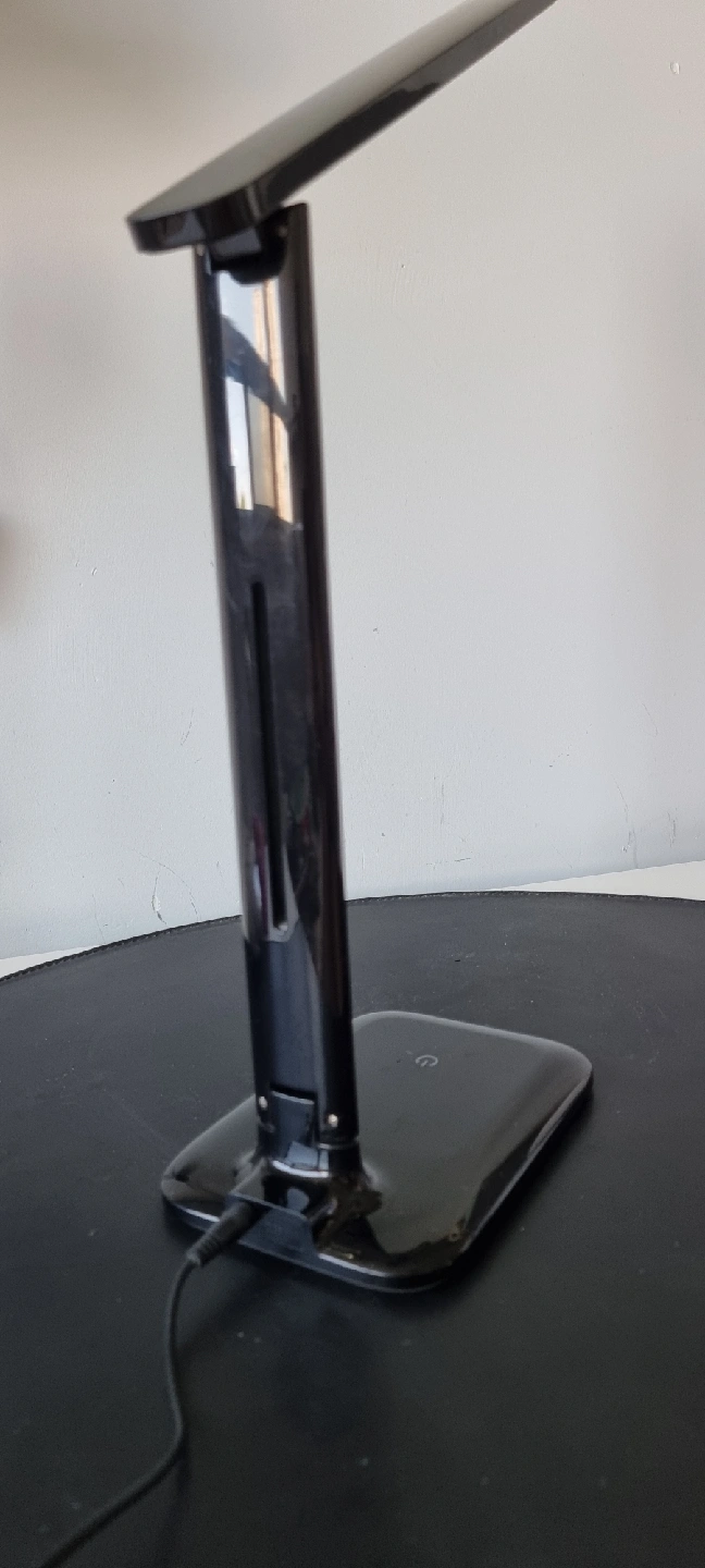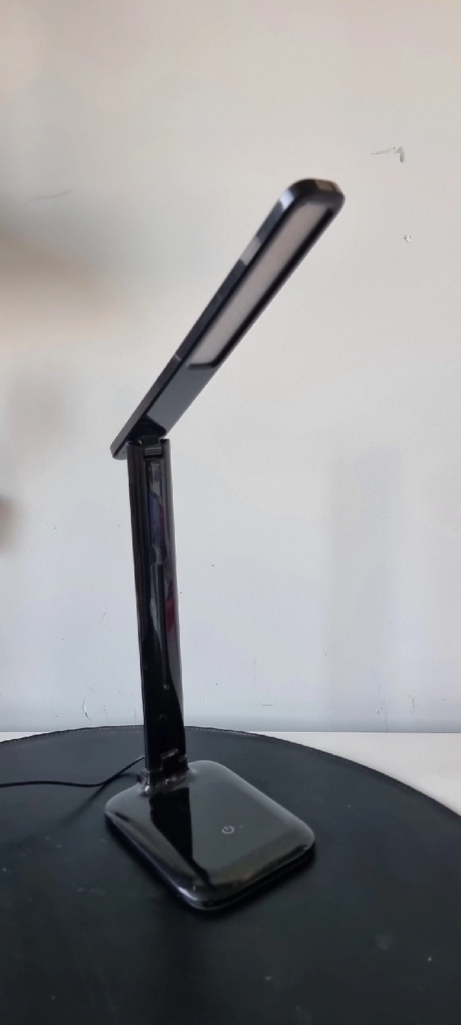 Black LED Desk Lamp It's perfect for a desk or bedside table. The LED light has 3 levels of brightness. Provides nice, bright light for reading or working!