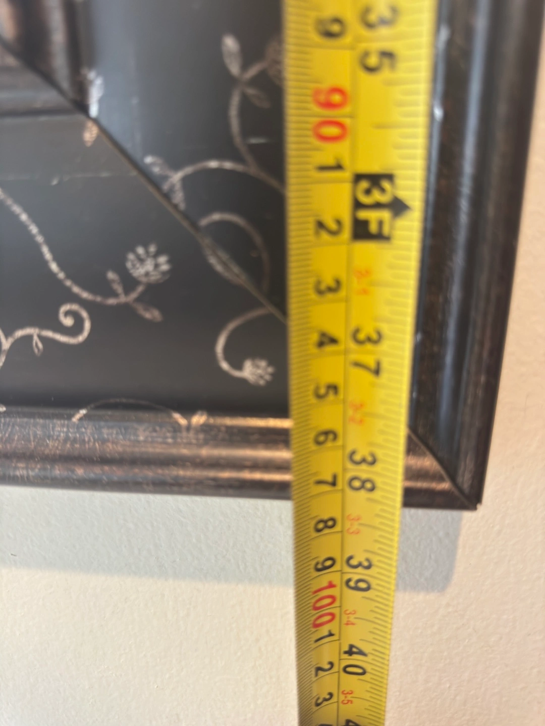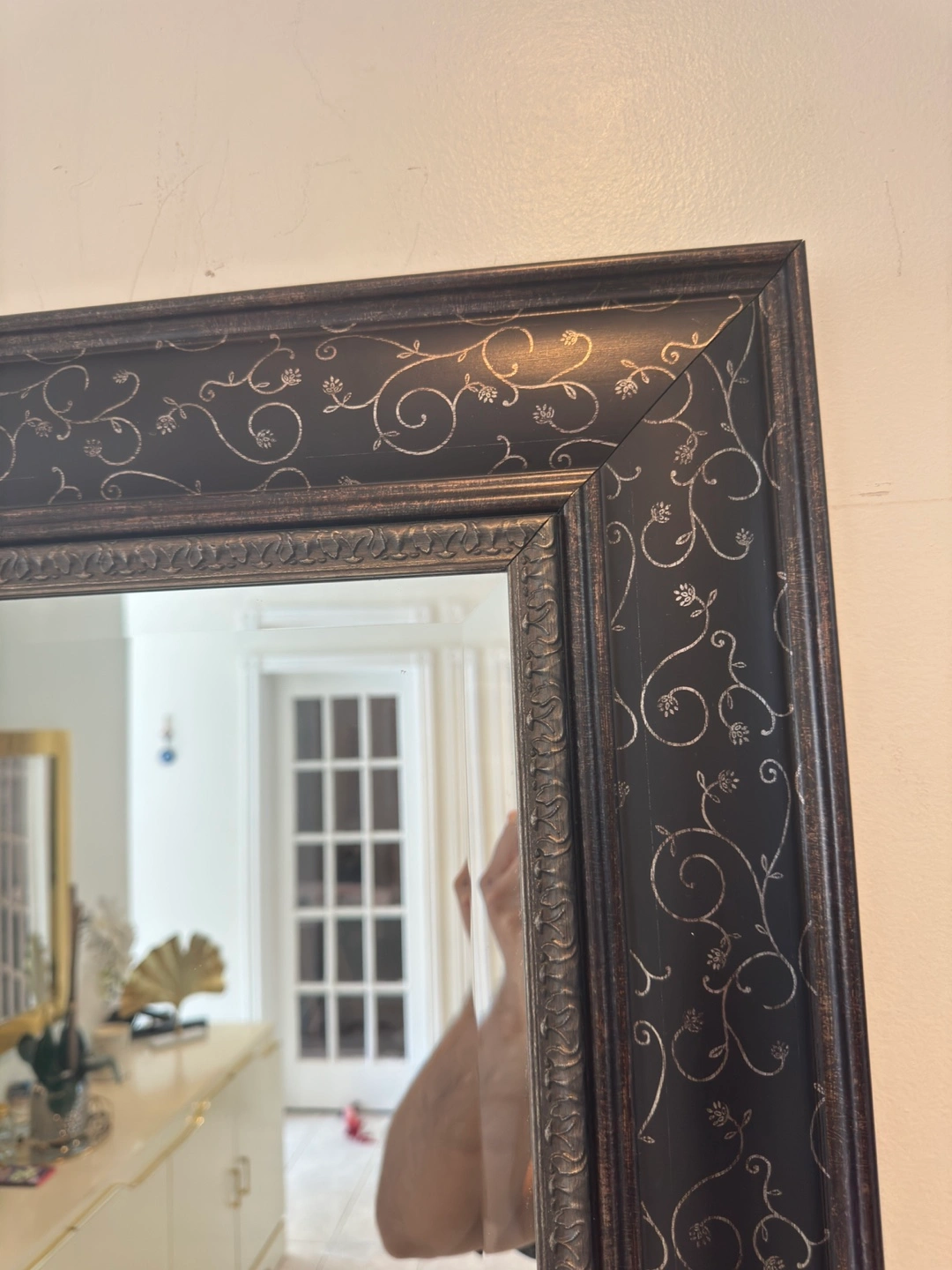 Selling a large decorative wall mirror! It has a beautiful patterned frame. The dimensions are approximately 47 inches by 39 inches.