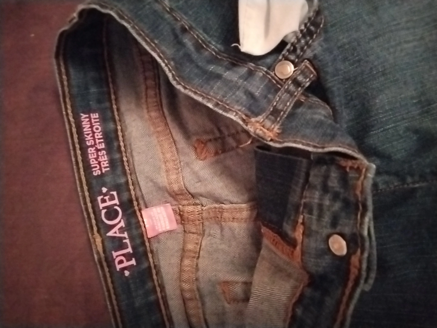 I'm selling a pair of The Children's Place super skinny jeans. They're a size 14 and in great condition. Perfect for your child! One pair with adjustable waist!