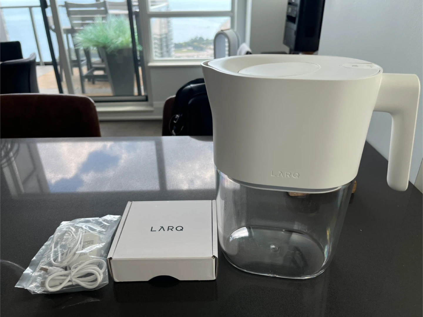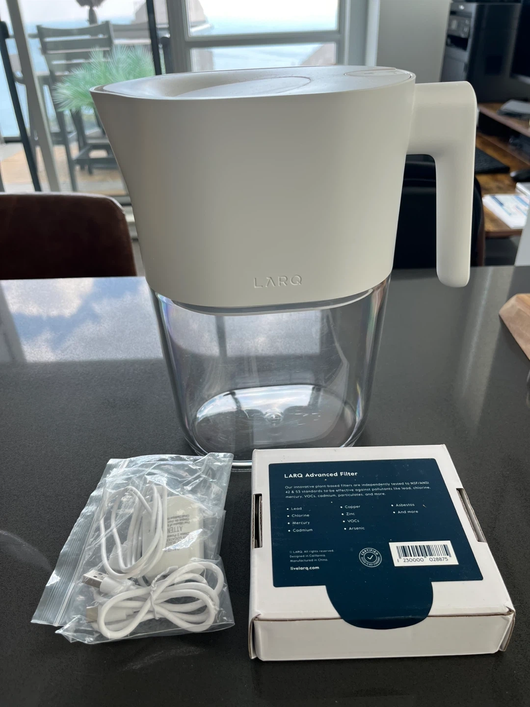 LARQ Pitcher PureVis 1.9L/ 8-Cup | Self-Cleaning PureVis Water Filter Pitcher for Tap and Drinking Water | Plant-Based Carbon Filter, BPA Free | Pure White - Change Filter Indicator, Intelligent Filter Life Tracking, PureVis Technology, Reduces PFAS, Lead, Chlorine, and More, Refrigerator SafeChange Filter Indicator, Intelligent Filter Life Tracking, PureVis Technology, Reduces PFA… - Product Dimensions 25.4L x 23.8W x 25.4H Centimetres - Material BPA-free, phthalate-free, food-grade, plastic - Capacity 1.9 liters - Included components LARQ Pitcher PureVis, Magnetic USB charger IMPROVES TASTE OF WATER – Innovative plant-based carbon filters effectively filter harmful contaminants. Pure-tasting water provides better-tasting coffee, tea, smoothies—everything—for a healthier, more sustainable lifestyle. BEST-IN-CLASS FILTRATION – Independently tested to NSF/ANSI 42, 53 & 401 standards to be effective against harmful contaminants. PUREVIS TECHNOLOGY – Improves the quality of your water by keeping your pitcher clean. One charge lasts up to 2 months of use. LONG-LASTING FILTERS – 60-gal filter capacity lasts up to 50% longer than traditional filters. 1 LARQ Filter replaces more than 450+ standard single-use bottles. Better for the planet and your wallet. INTELLIGENT FILTER TRACKING – Smart sensors track the volume of water filtered through. Take the guesswork out of filter replacements. Get the LARQ App (iOS only) to control your Pitcher in the palm of your hands.