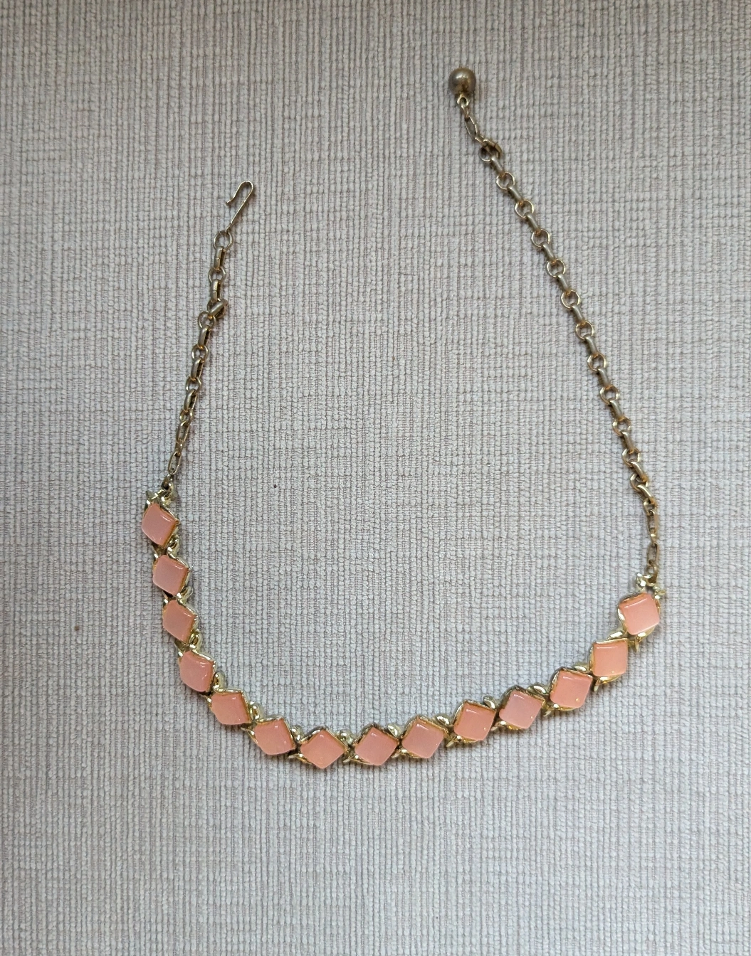 Selling a cute peach and gold-tone necklace! It's in great condition and would be a lovely addition to any outfit